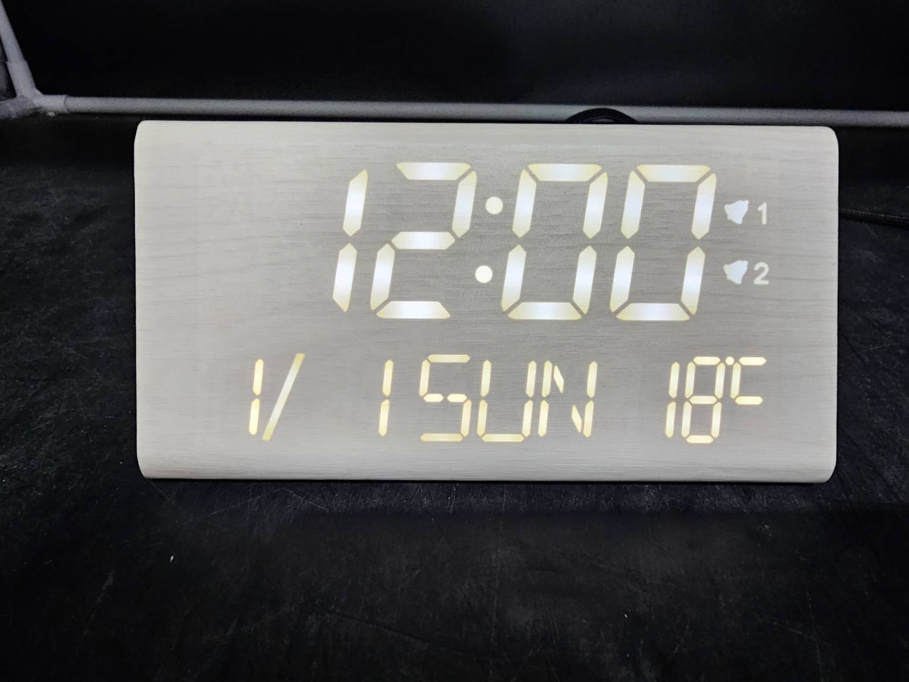 Digital LED Clock With Dual USB Charging Ports and Calendar Display – White