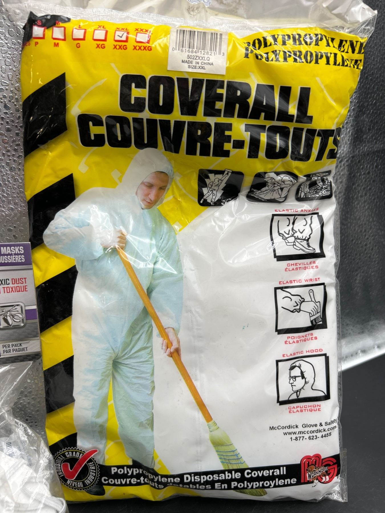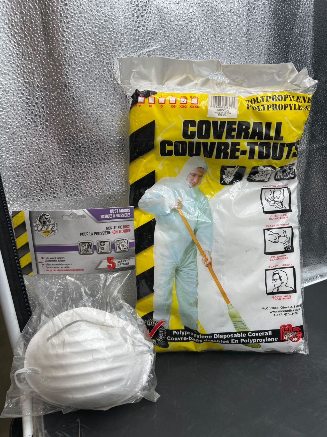 Disposable Polypropylene Coveralls (XXL) AND Non-Toxic Dust Masks Set of 5.