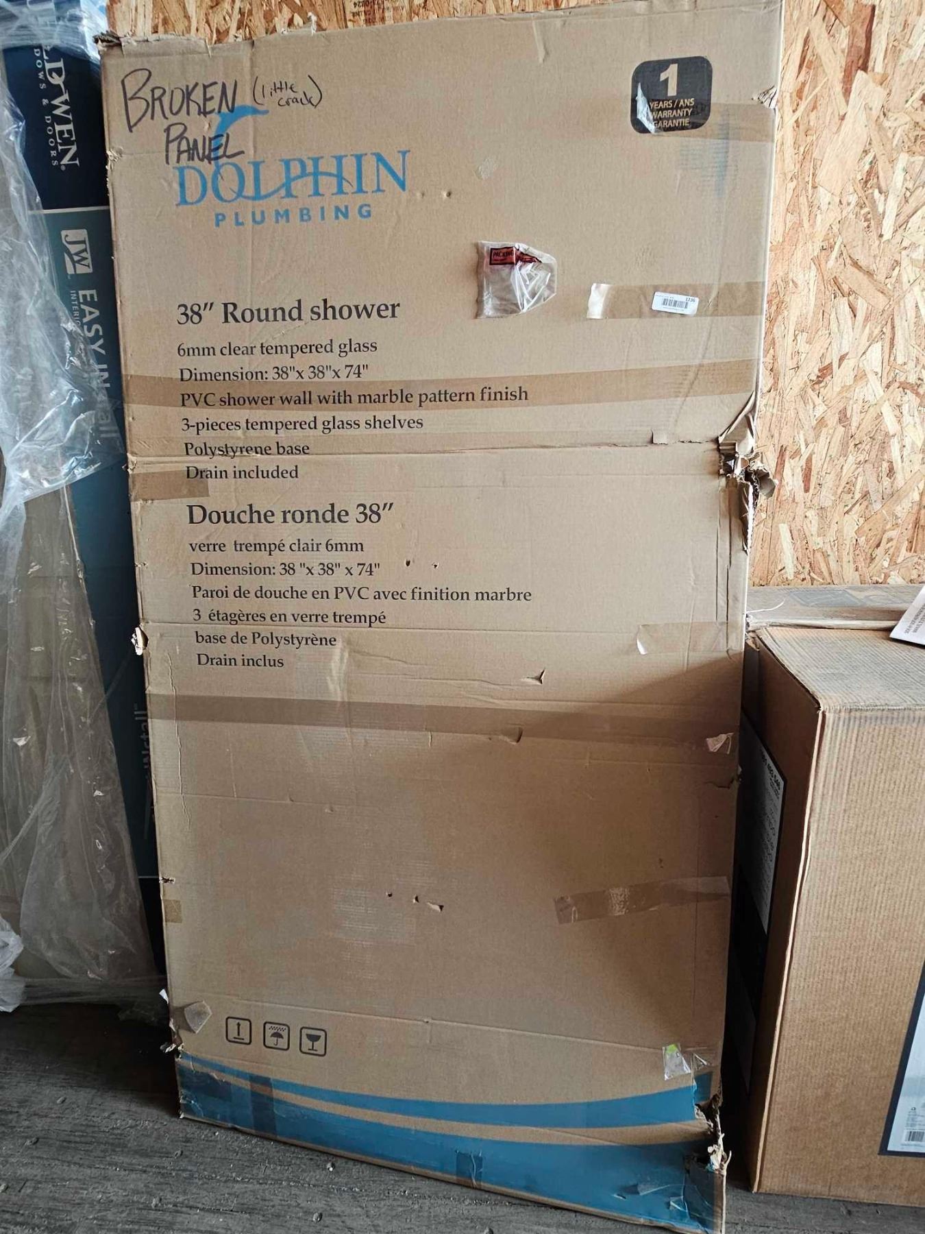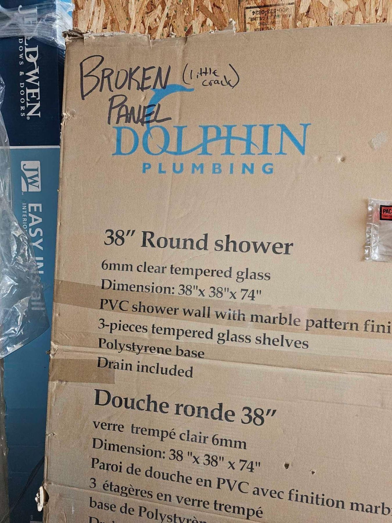 Dolphin 38"Round Shower - PVC Shower Wall with Marble PatternFinish