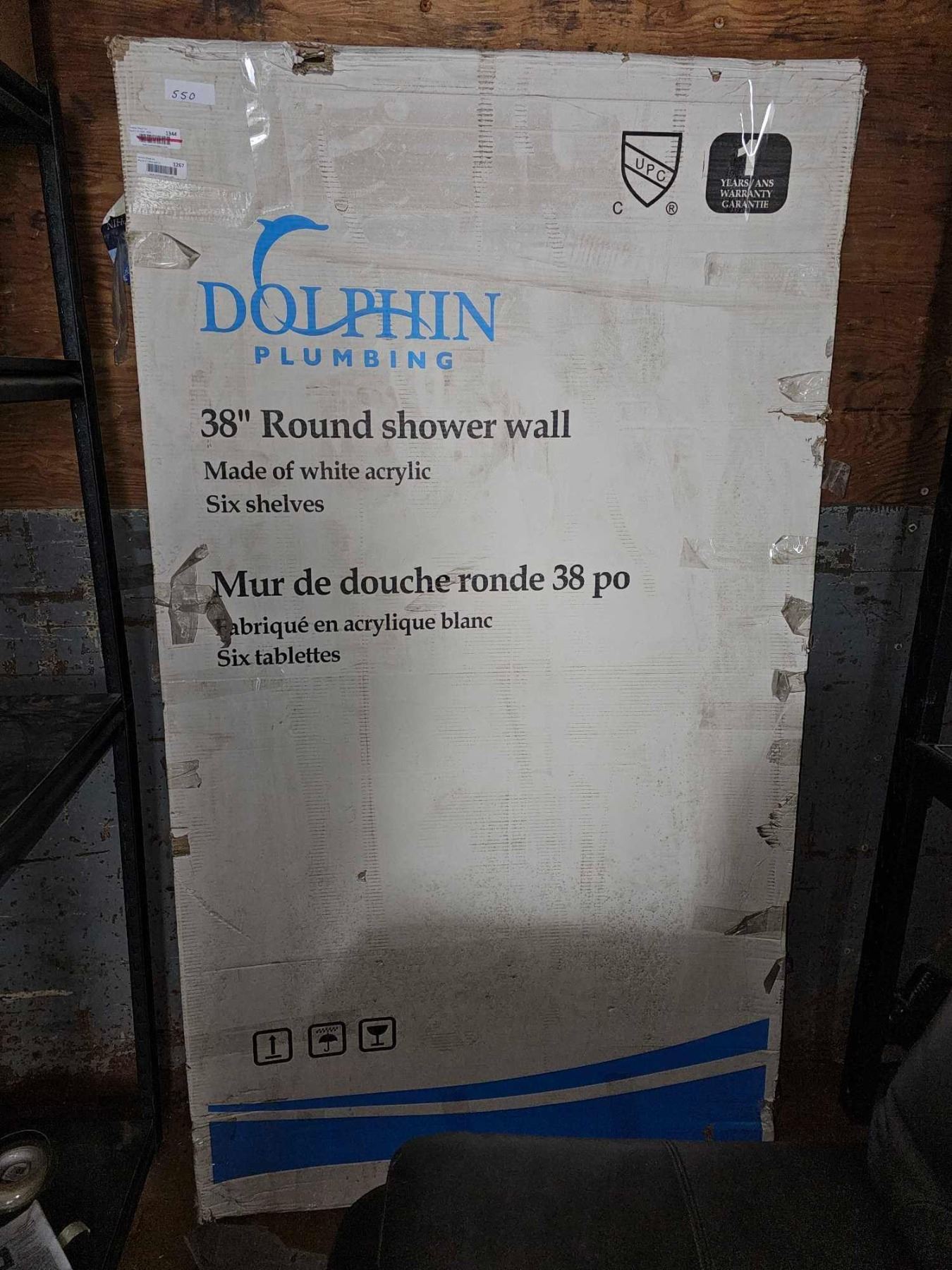 Dolphin 38"Round Shower Wall - White Acrylic  - No Doors, Wall Only