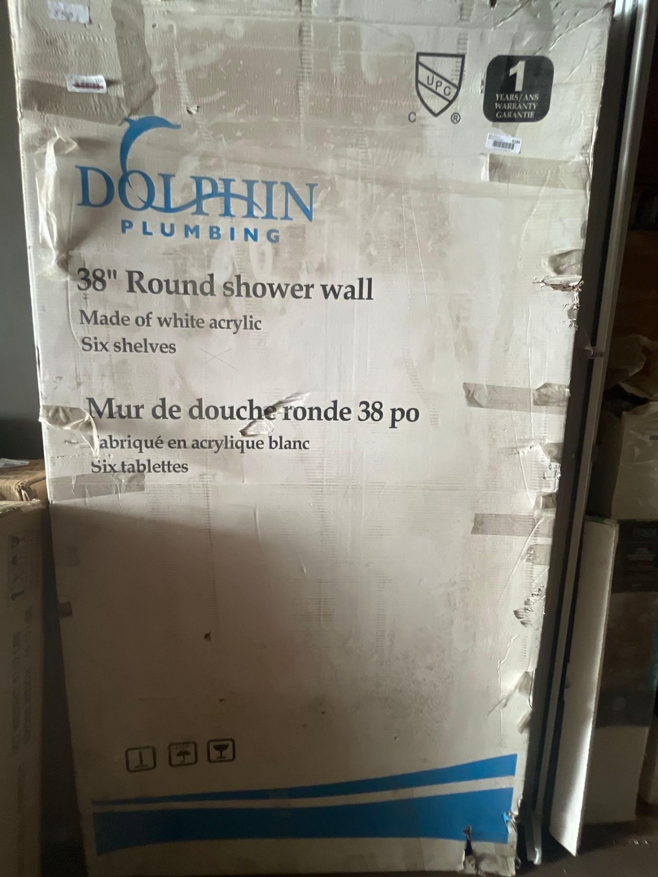 Dolphin Plumbing 38" Round Shower Wall; White Acrylic with Six Shelves