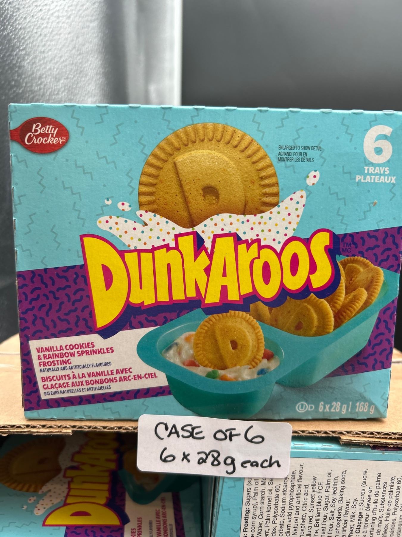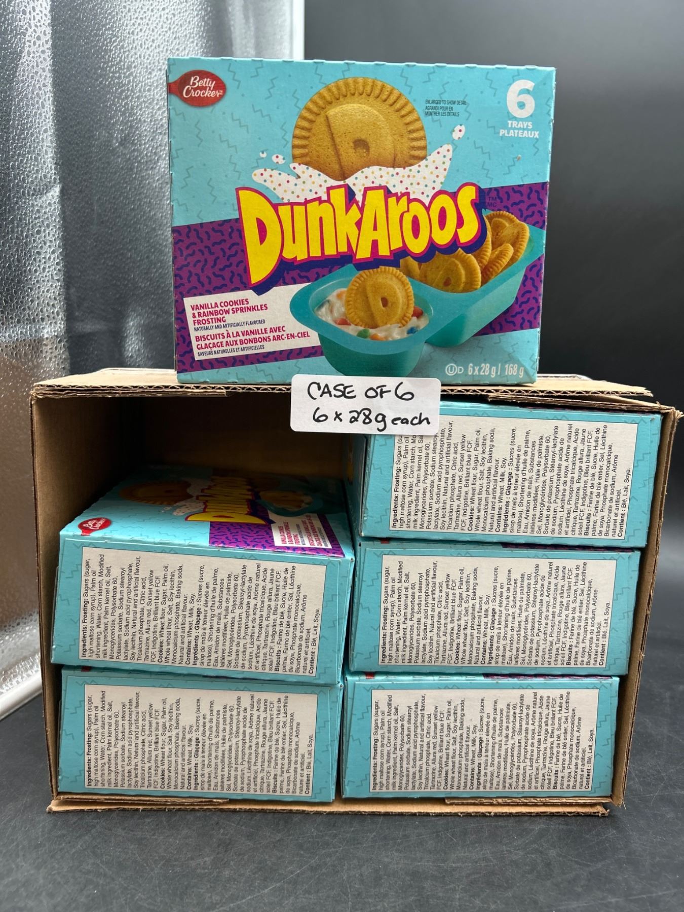 Dunkaroos Vanilla Cookies with Rainbow Sprinkles Frosting, Case of 6 (6 Trays, 28g Each)