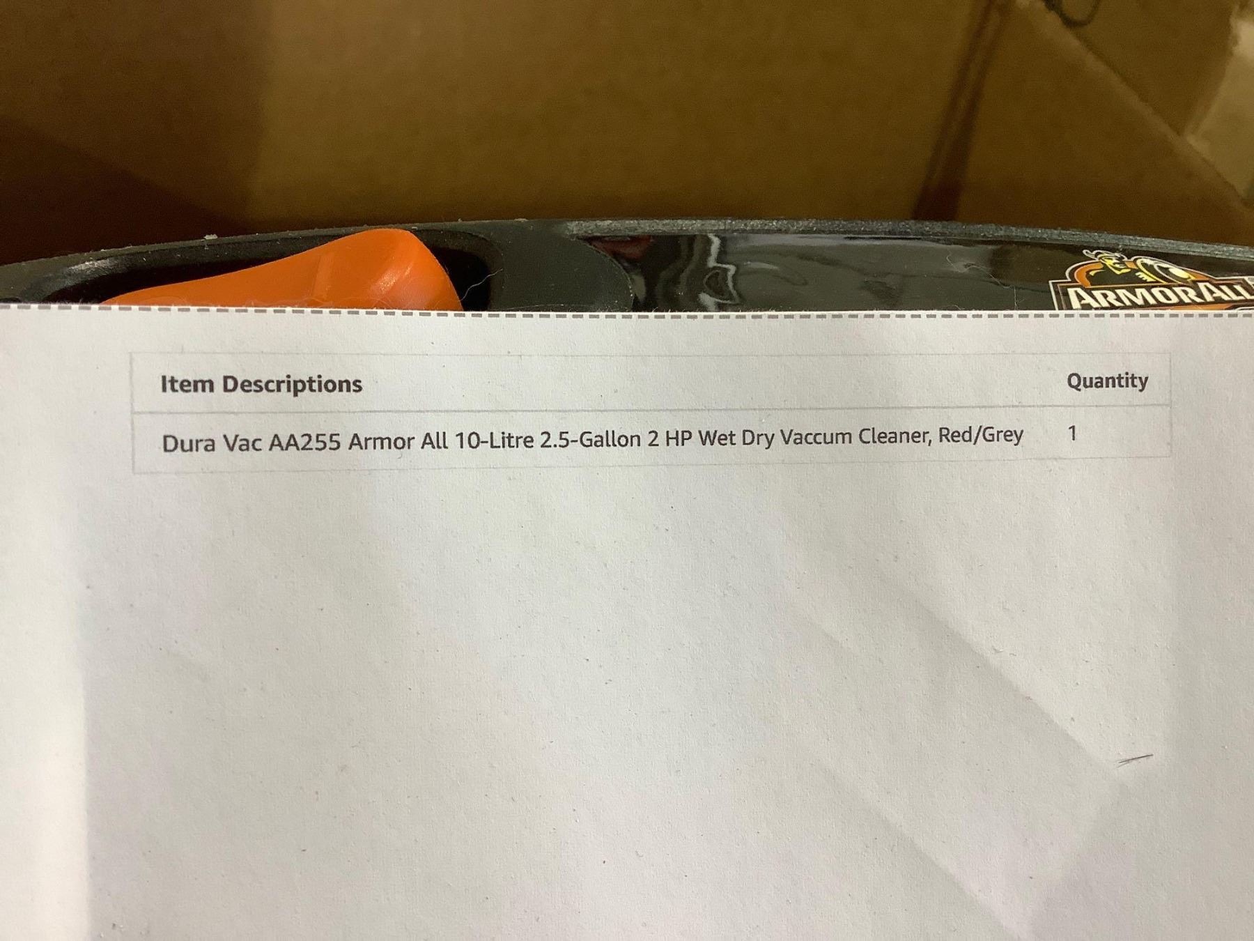 Dura Vac Armor All 2.5 Gallon 2HP Wet/Dry Vacuum