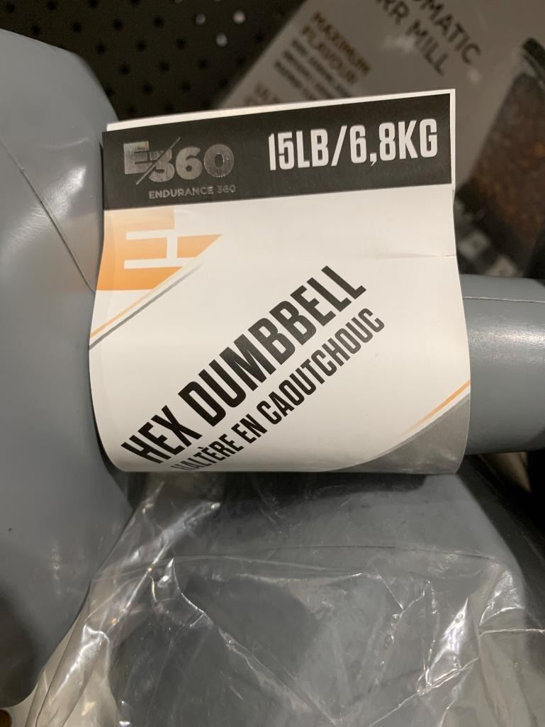 E360 Endurance Hex Dumbbell, 15lb/6.8kg, Rubber-Coated Set of 2