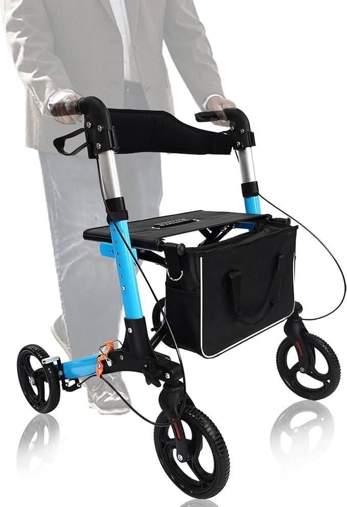 ELELIFE 2 in 1 Rollator Walkers for Seniors with Seat, 10? Wheels Medical Rolling Walker with Adjustable Handle, Aluminum Folding Mobility Walking Aid