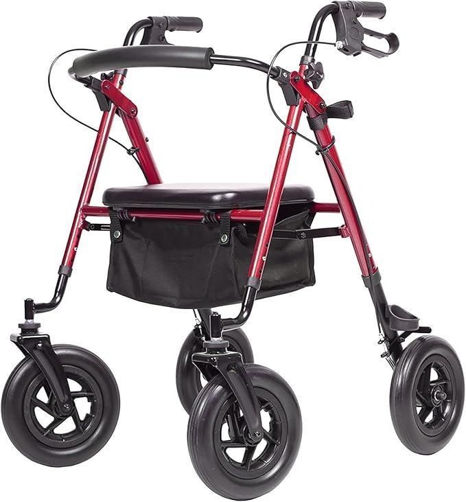 ELENKER All-Terrain Rollator Walker with 10” Rubber Wheels, Padded Seat & Backrest, Under-s