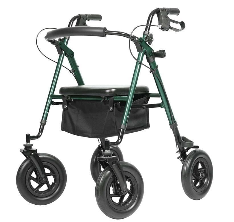ELENKER HFK-9236D4 All-Terrain Rollator Walker with 10” Rubber Wheels, Padded Seat & Backrest, Under-seat Basket for Seniors Green