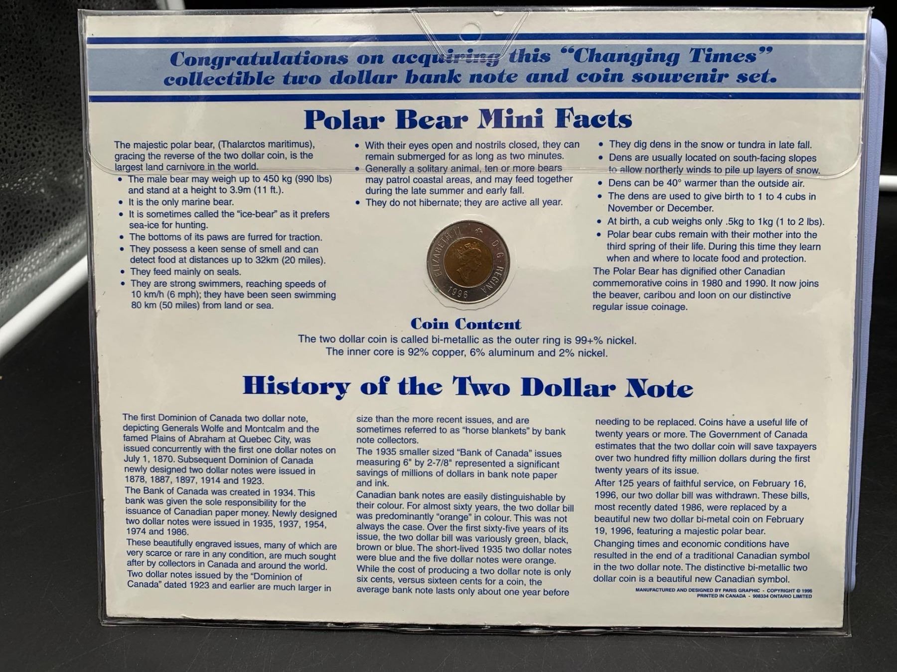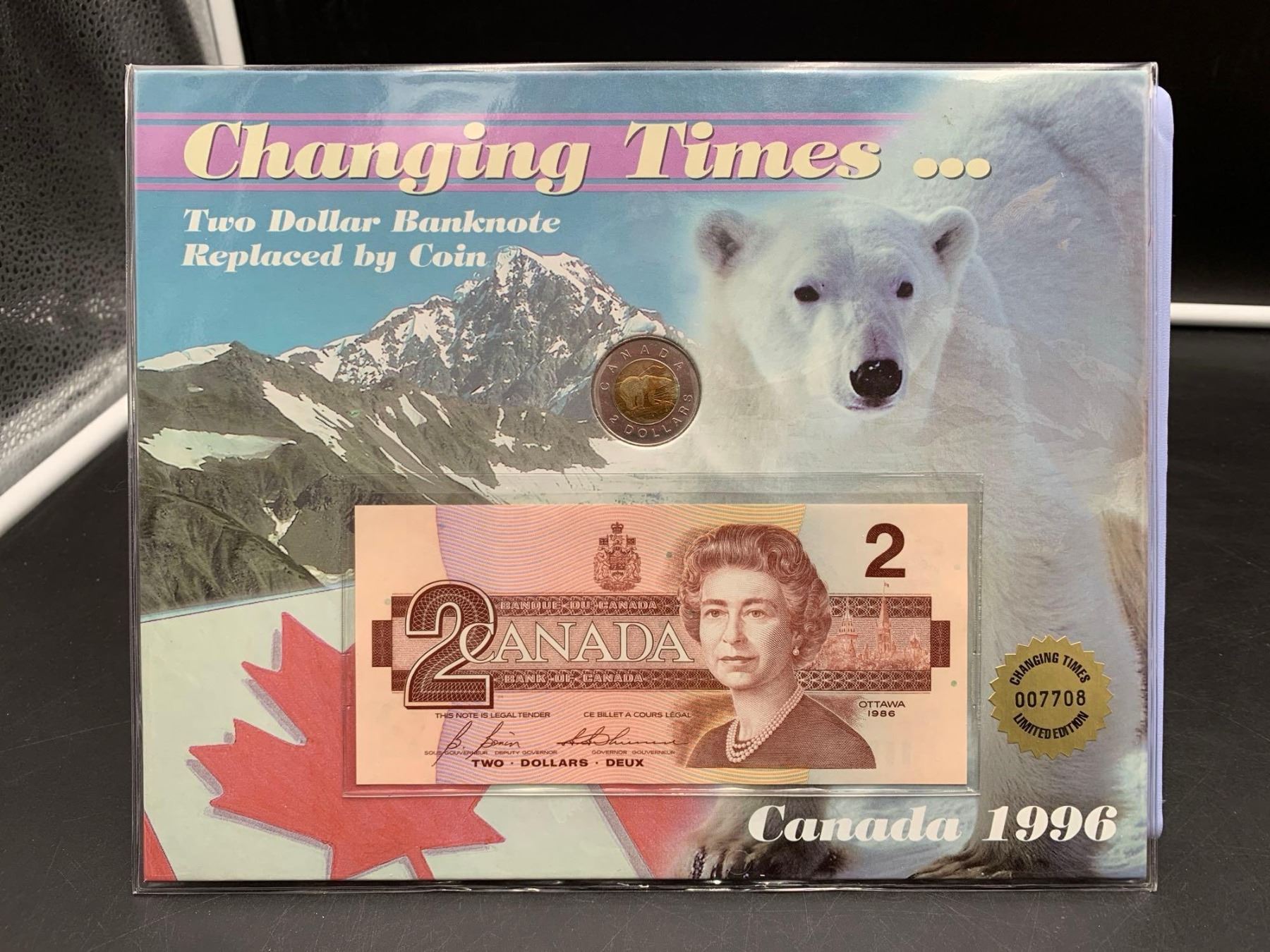 ESTATE ITEM - Changing Times Two Dollar banklNote and Toonie 1996