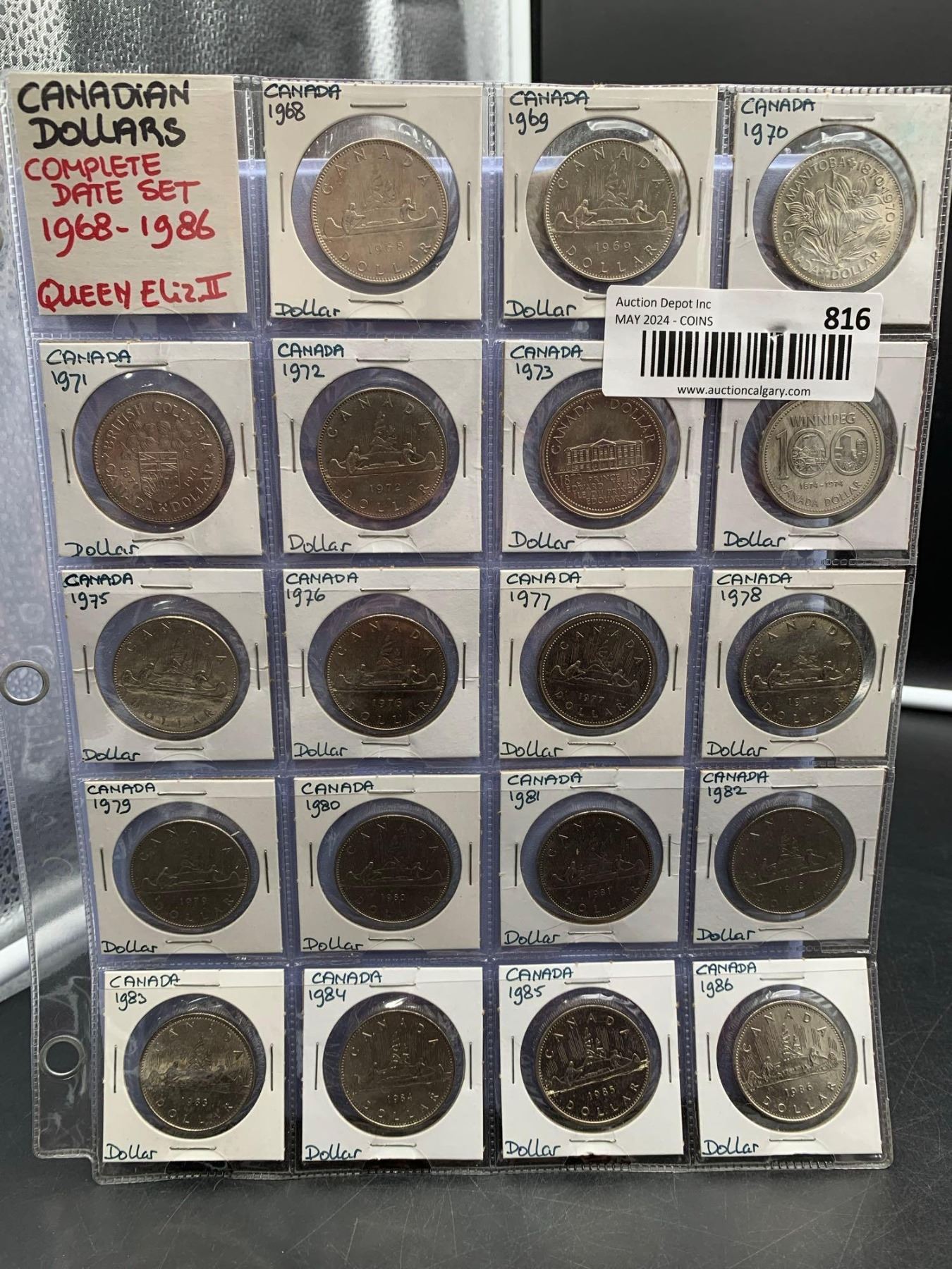 ESTATE ITEM - Complete Date Set 1968-1986 Canada $1.00 Dollar Coins Cataloged LOT of 19