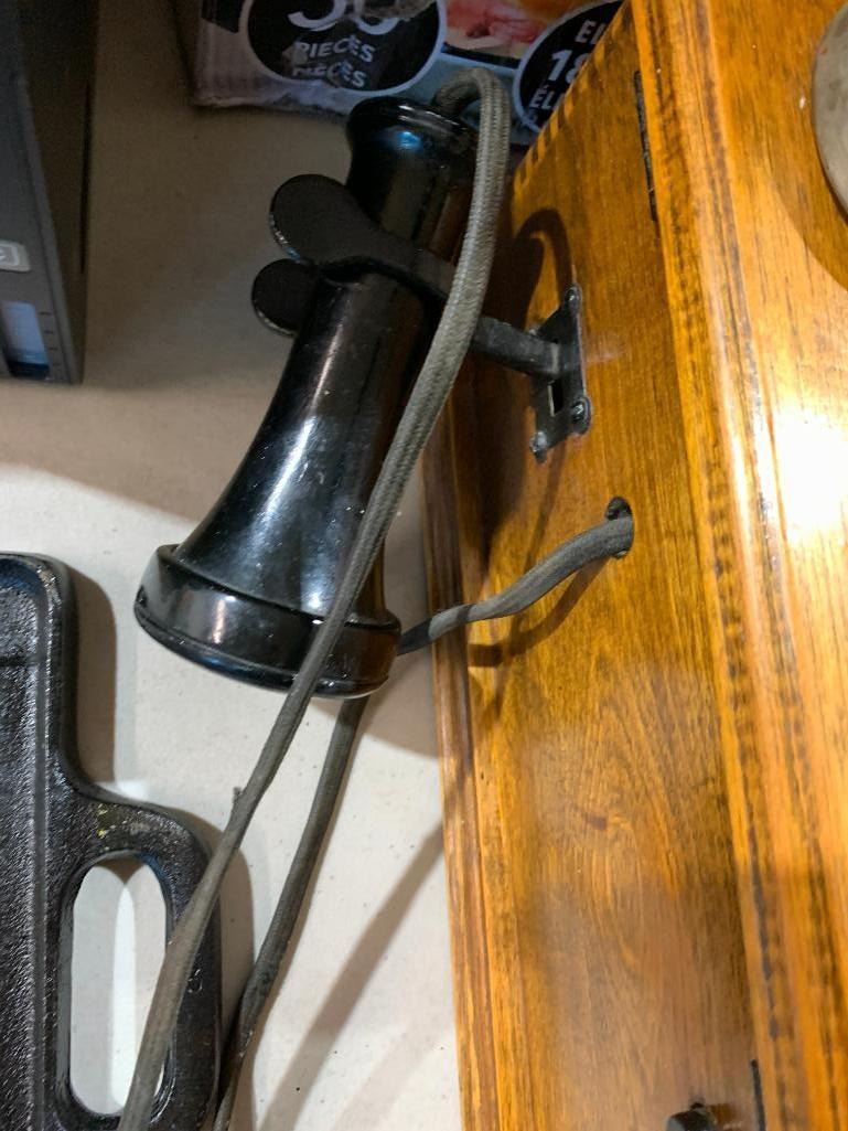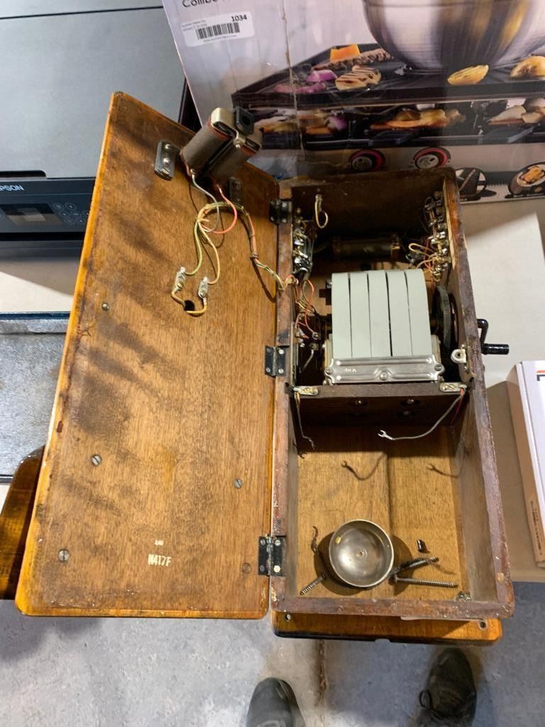 Early Western Wall Mount , Hand Crank Wood Box Wall Phone