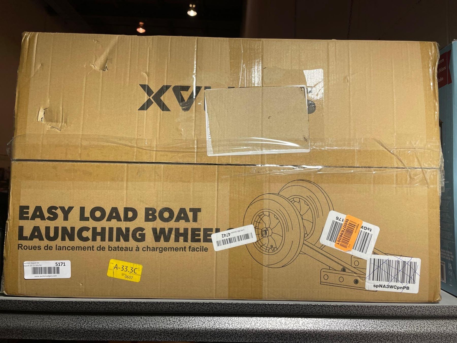 Easy load boat launching wheel