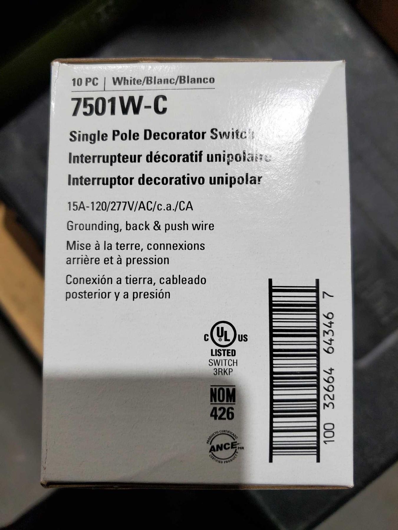 Eaton 7501W-C Single Pole Decorator Switch - Lot of 10