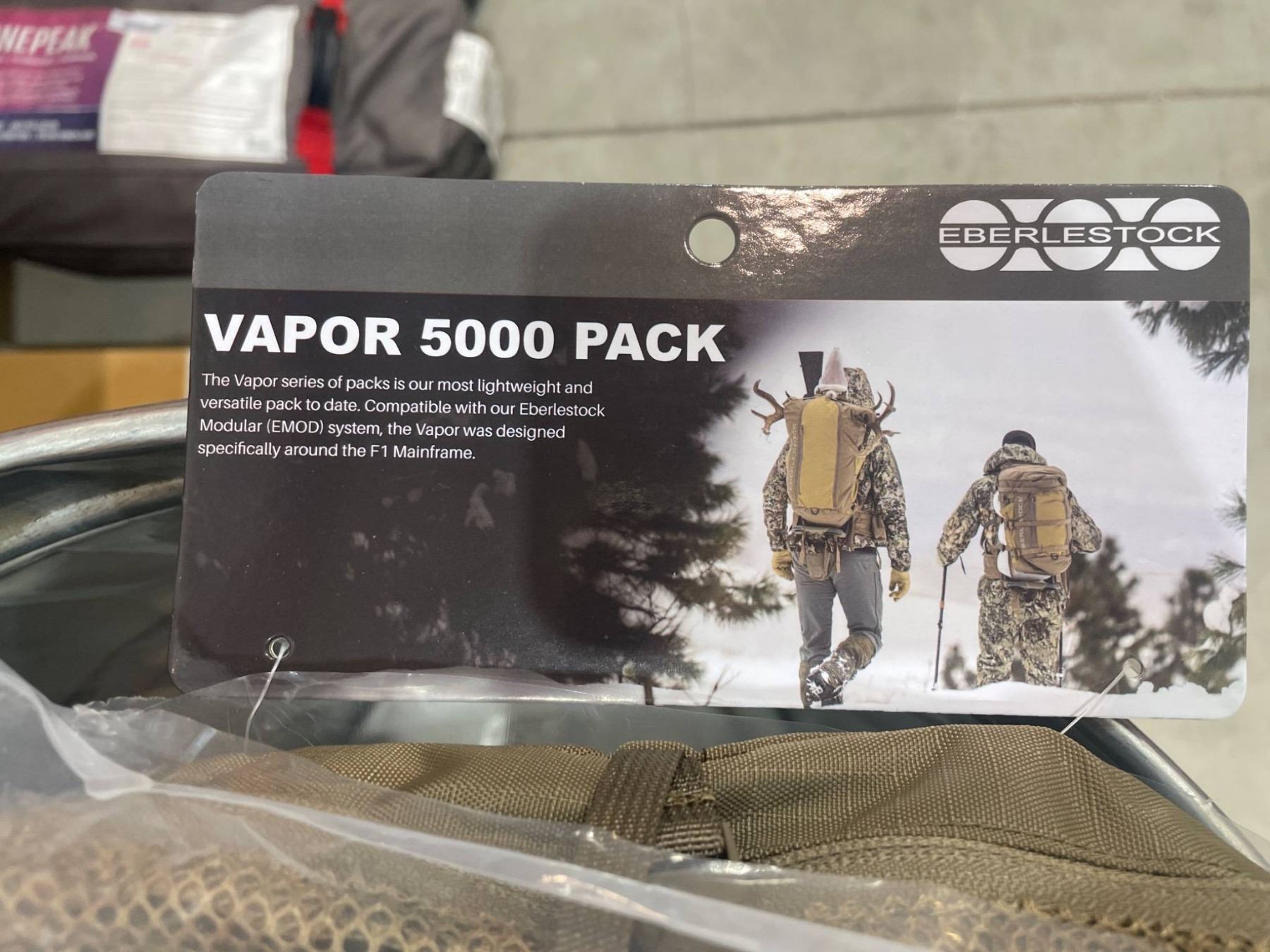 Eberlestock Vapor 5000 Pack, model V50V2, in Dry Earth color. Features a high-capacity modular system with durable design elements suitable for a variety of outdoor activities. Known for its lightweight and adaptable carry solutions.