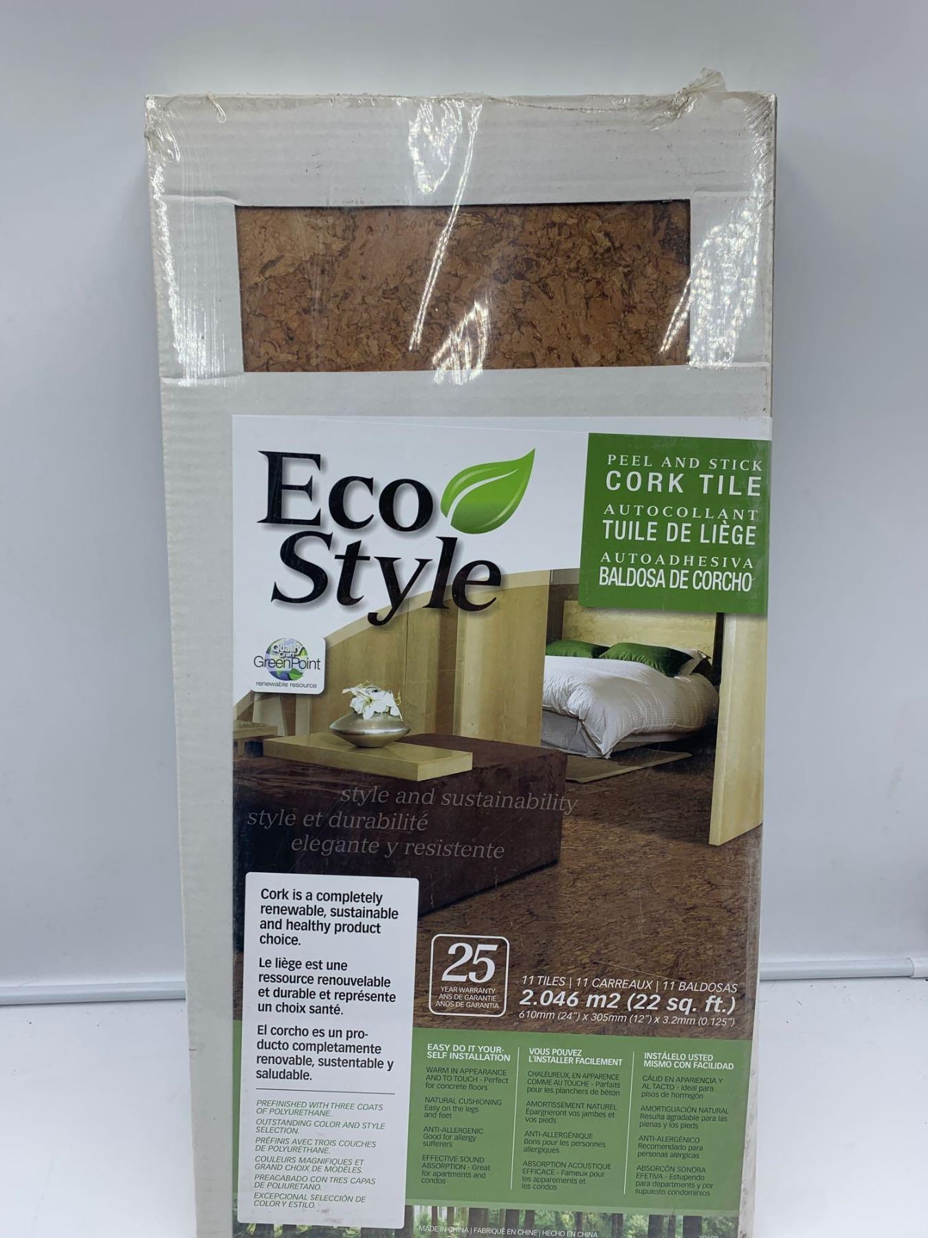 Eco Style Premium peel & Stick Cork Flooring Wen Series "Sulink" - 22Sq Ft/Box