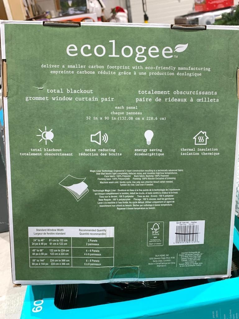Ecologee 2 total blackout grommet window curtain pair. each curtain is 52 in x 90 in