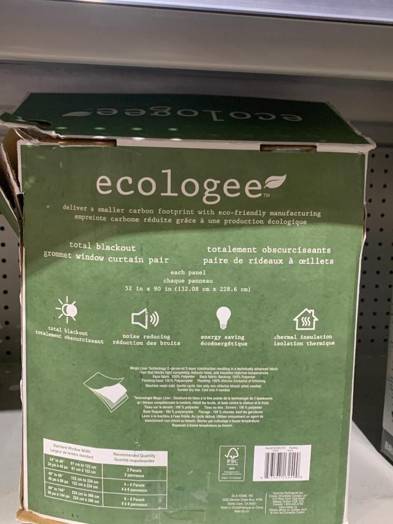Ecologee 2 total blackout grommet window curtain pair. each curtain is 52 in x 90 in