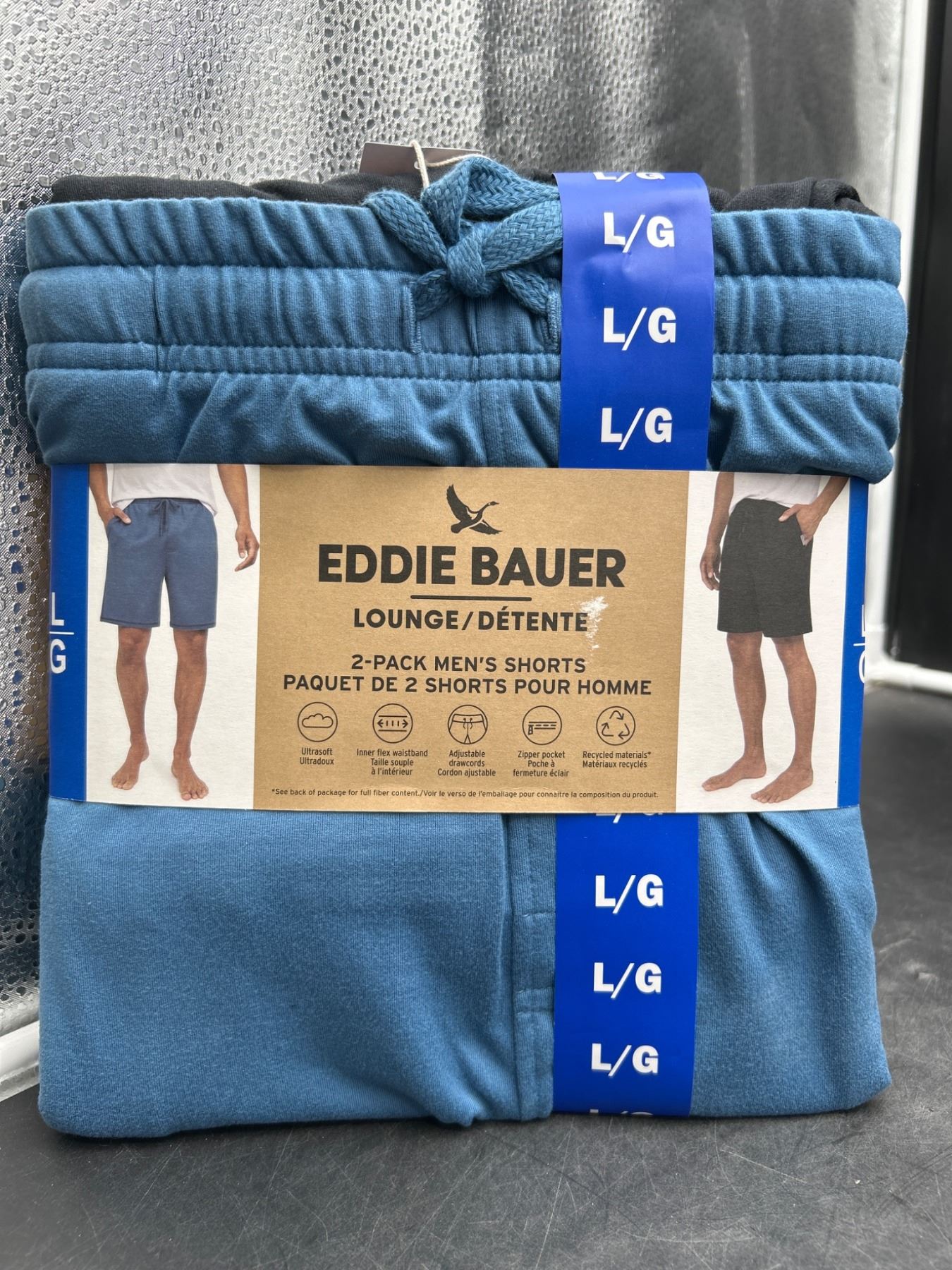 Eddie Bauer 2-Pack Men’s Lounge Shorts, Size L/G, Blue and Black