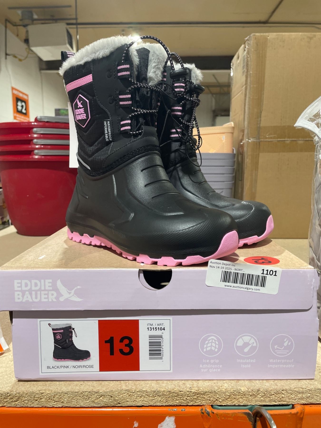 Eddie Bauer Girls’ Black Pink Winter Boots Size 13