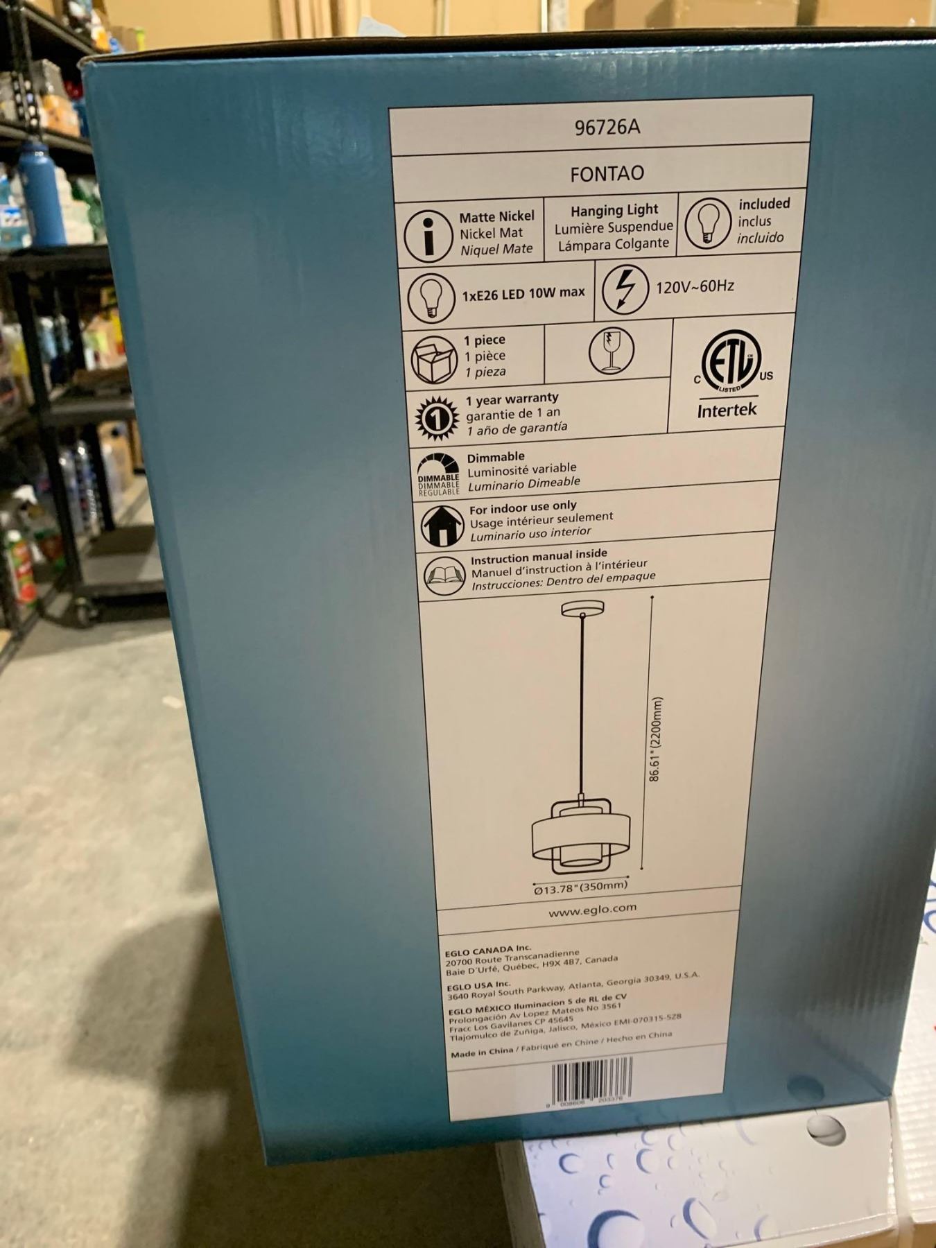 Eglo Fontao 96726A 800W Dimmable Pendant Light