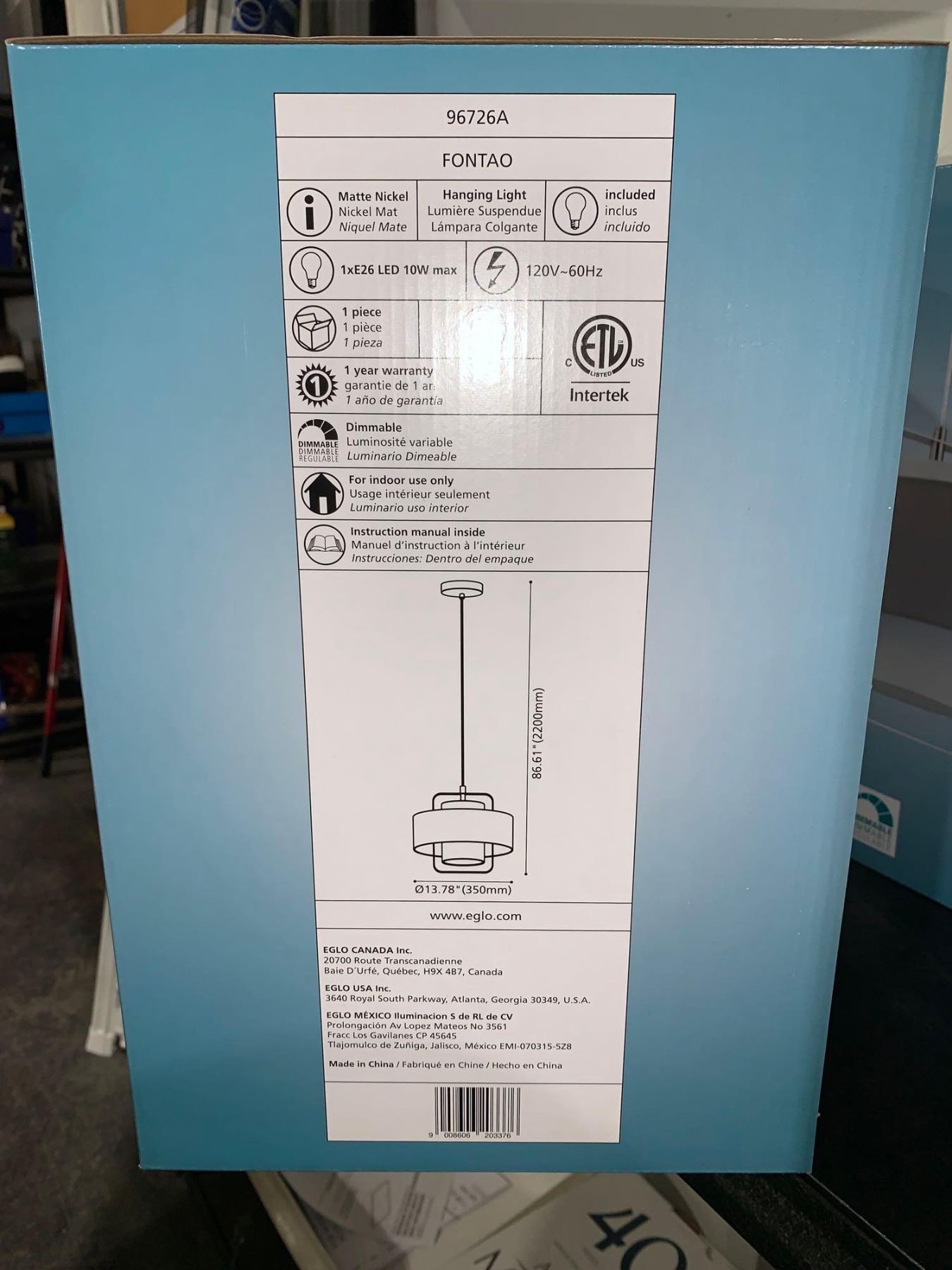 Eglo Fontao 96726A 800W Dimmable Pendant Light