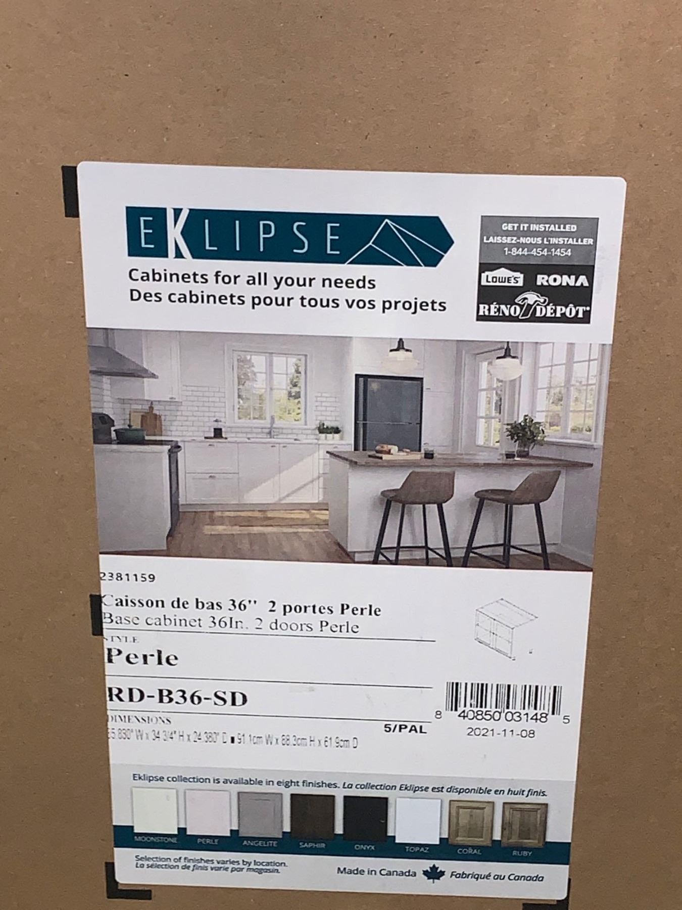 Eklipse Cabinets 36" 2 Door Base Cabinet "Perle"