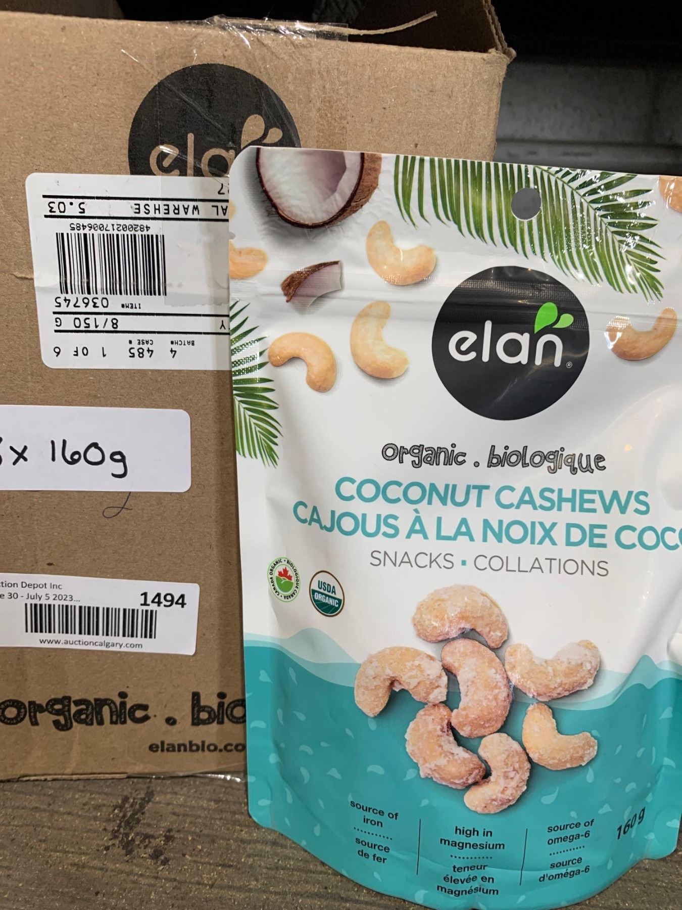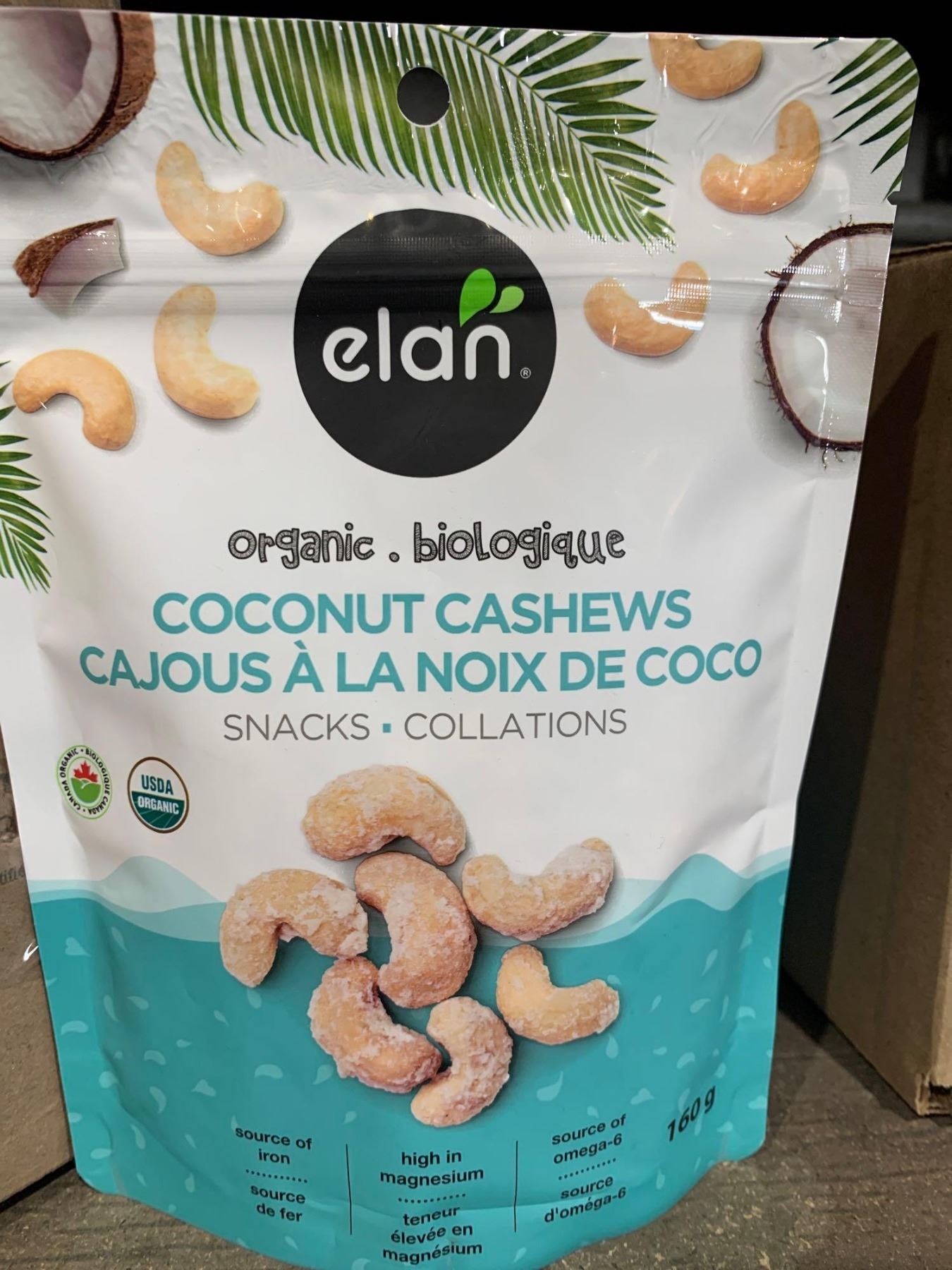 Elan Organic Coconut Cashews 8 x 160g