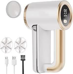 Electric Lint Remover - Rechargeable Fabric Shaver Bobble Remover for Clothes & Furniture - Adjustable 3-Speed, 6-Leaf Blade, LED Display, USB Charging