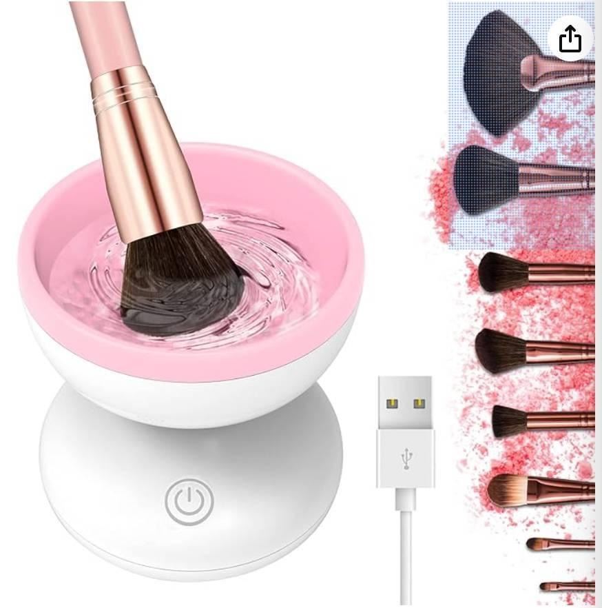 Electric Makeup Brush Cleaner, Washing Automatic Pink Machine For All Size Cosmetic Brushes Spinner