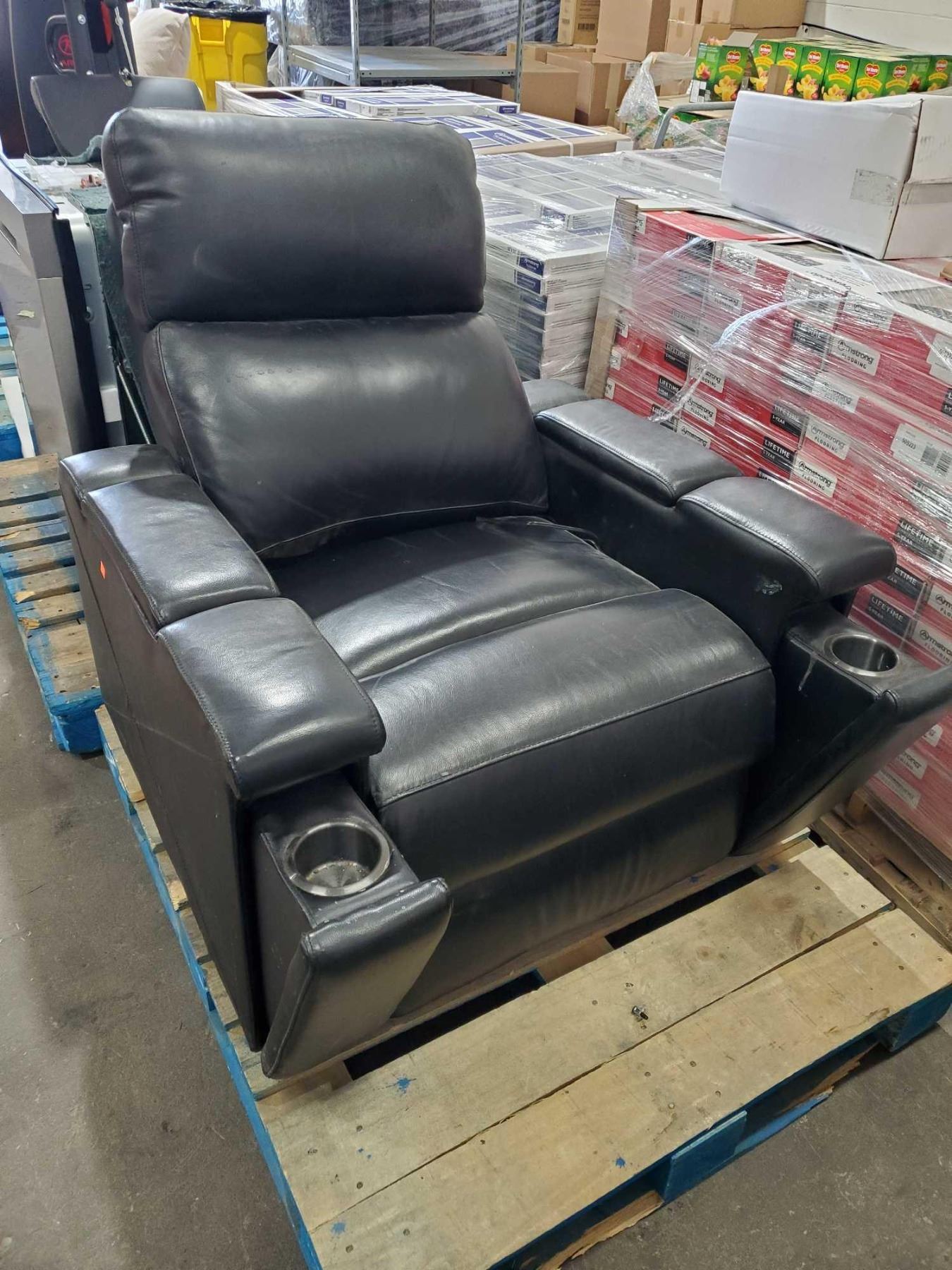 Electronic Leather Like Recliner Chair with Pop Out Cup Holders and USB Charging Port-  UNTESTED- OPEN/OUT OF BOX - SOLD AS IS