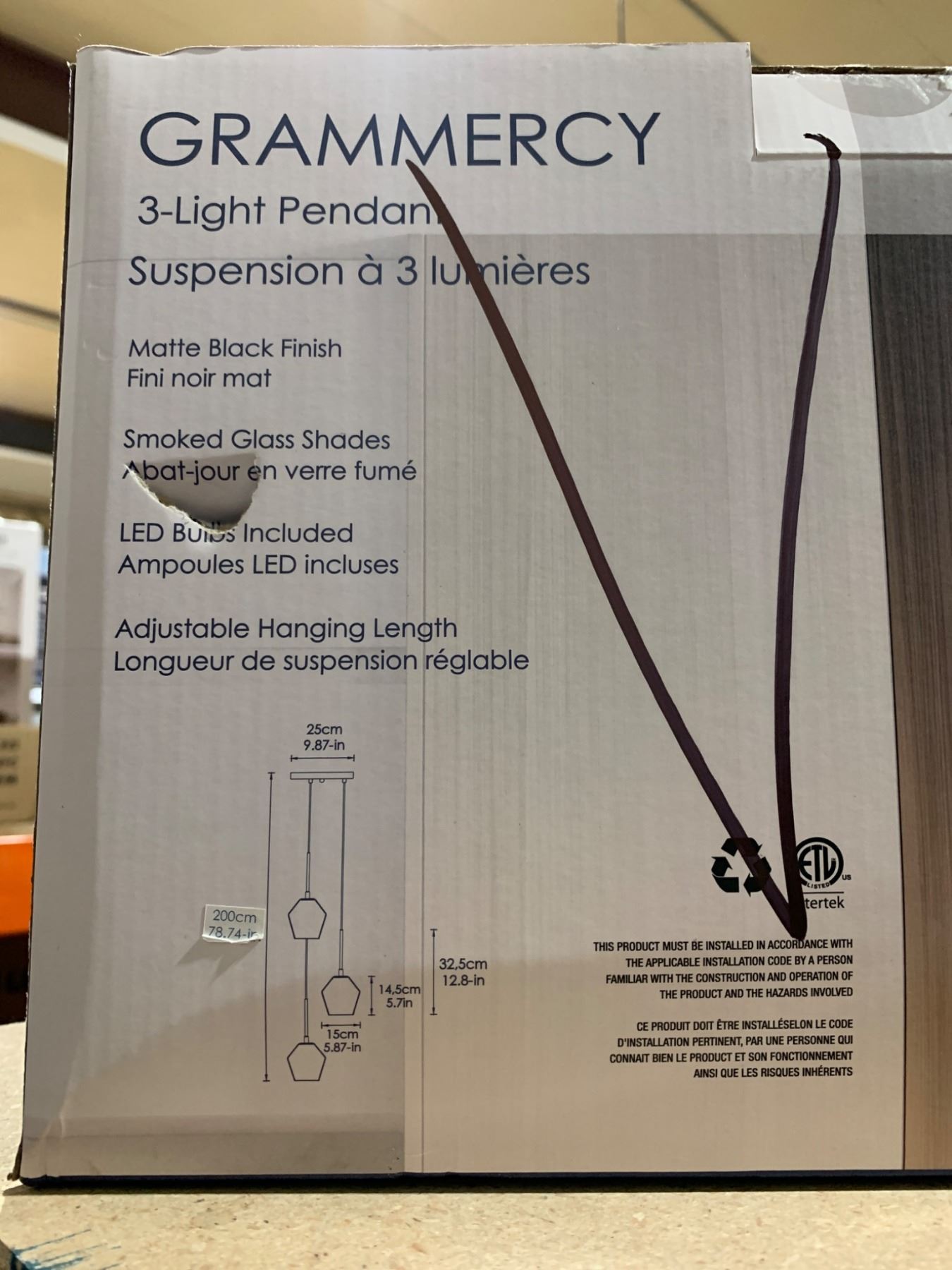 Empire Lighting Grammercy 3-Light Pendant with Matte Black Finish