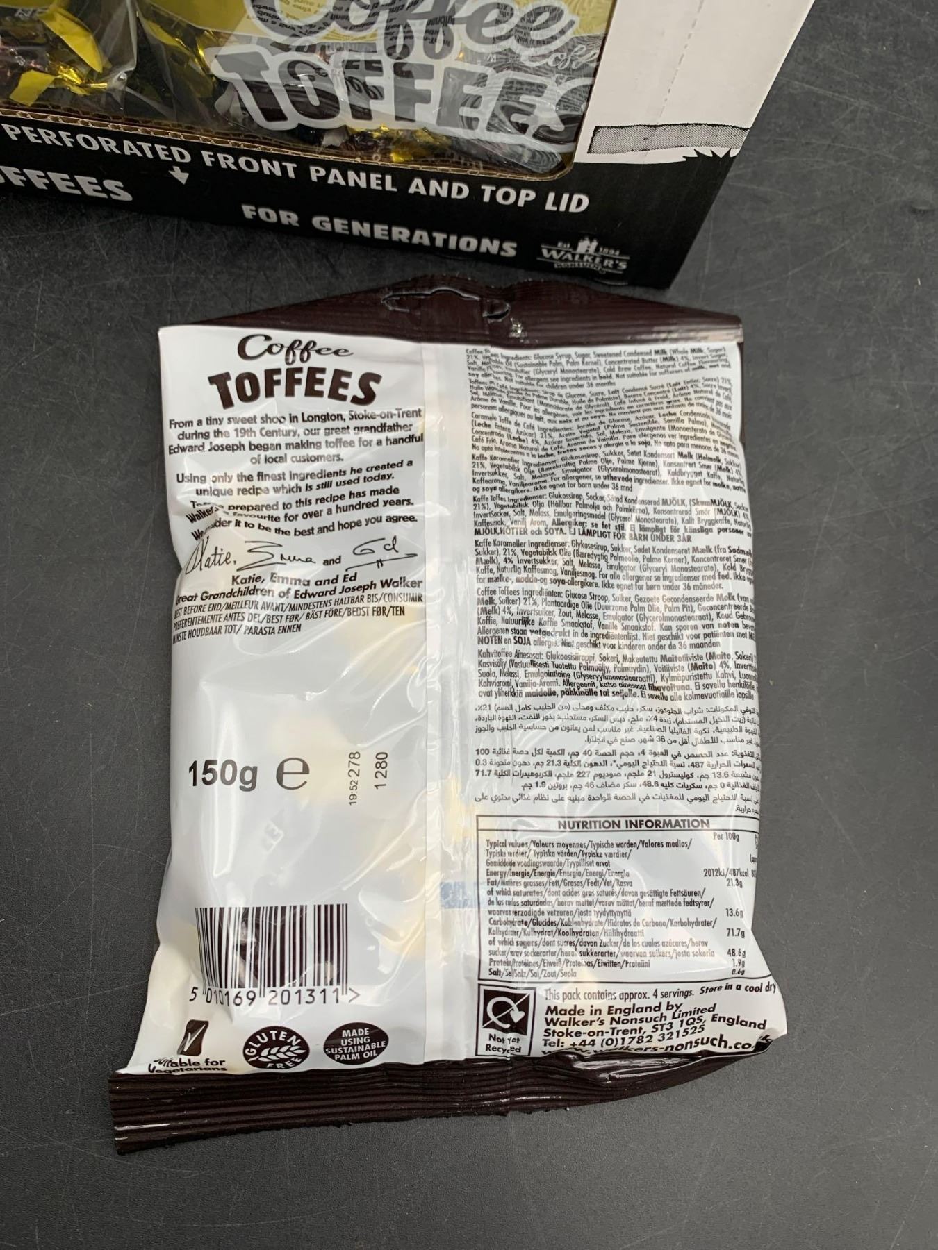 England's Finest Walkers Toffees, Arabica Coffee Toffees (150g x 12)