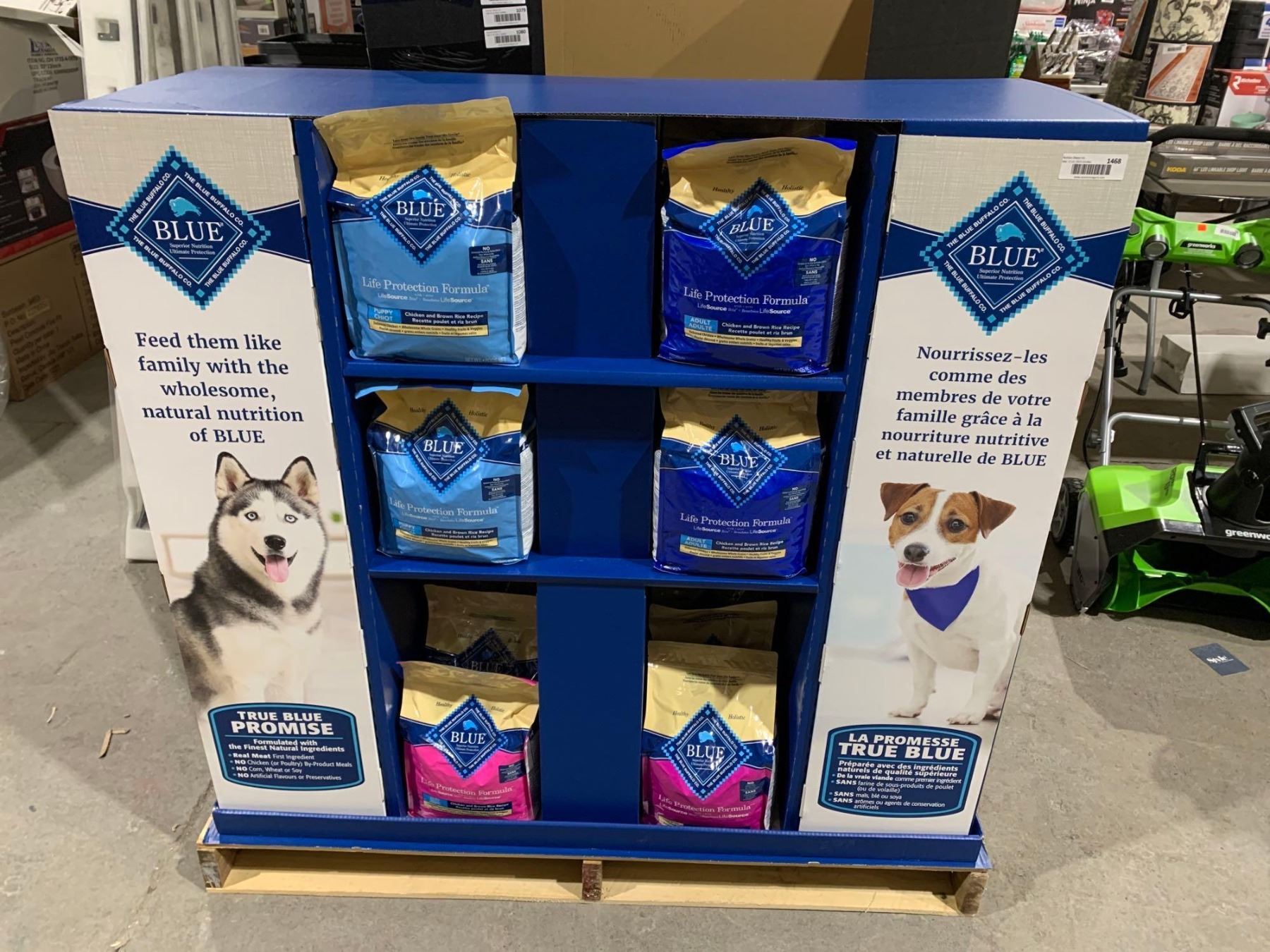 Entire Store Display of Assorted Blue Buffalo Wet Dog Food, Dry Dog Kibble & Assorted Flavor Treats