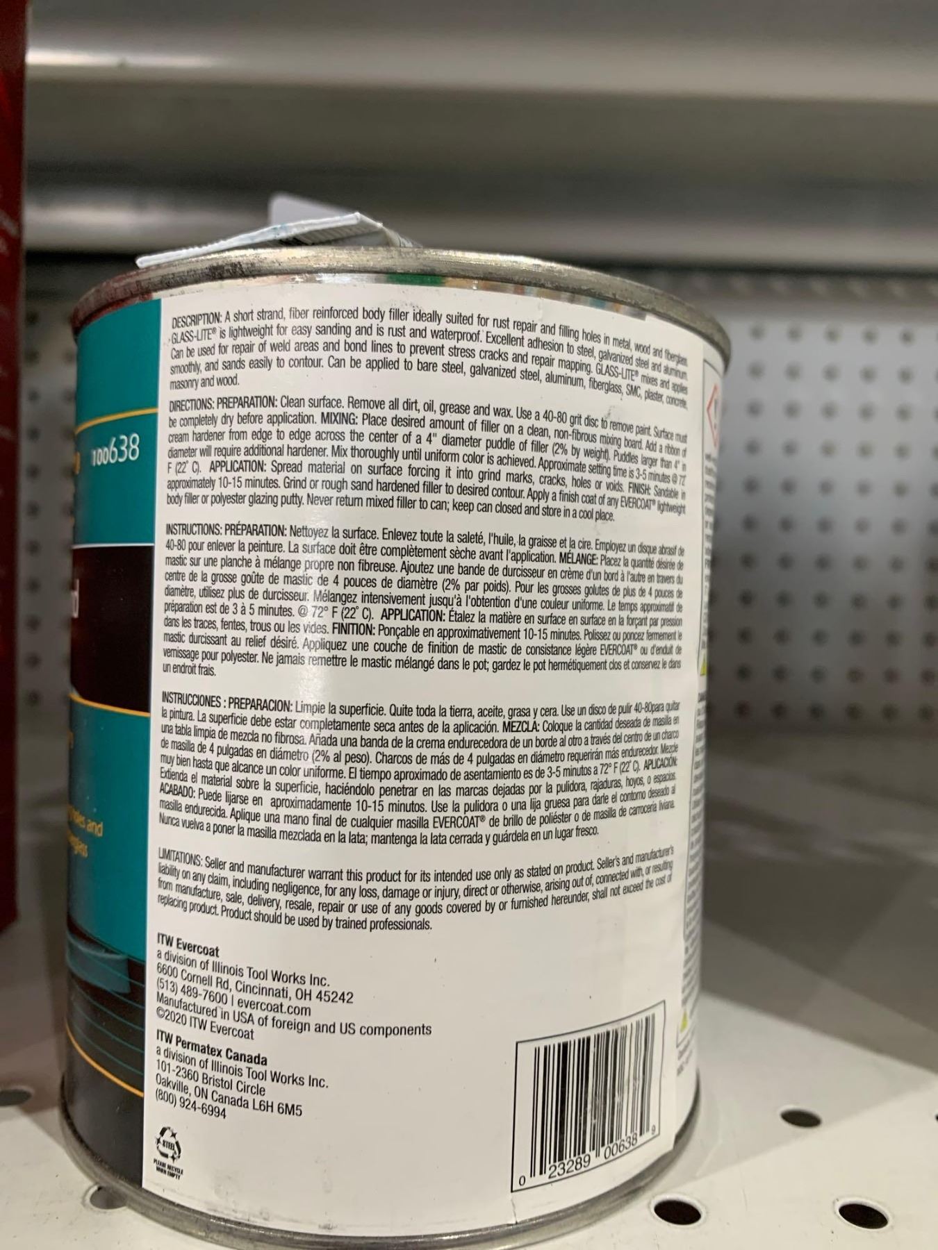 Evercoat Glass-Lite Light Weight / Short Strand Reinforced Filler 2.35lbs