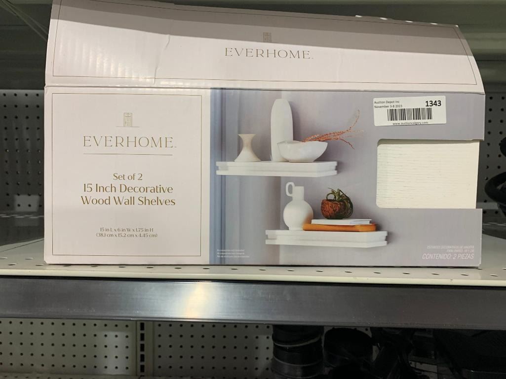 Everhome Set of 2 - 15 inch Decorative Wood Wall Shelves