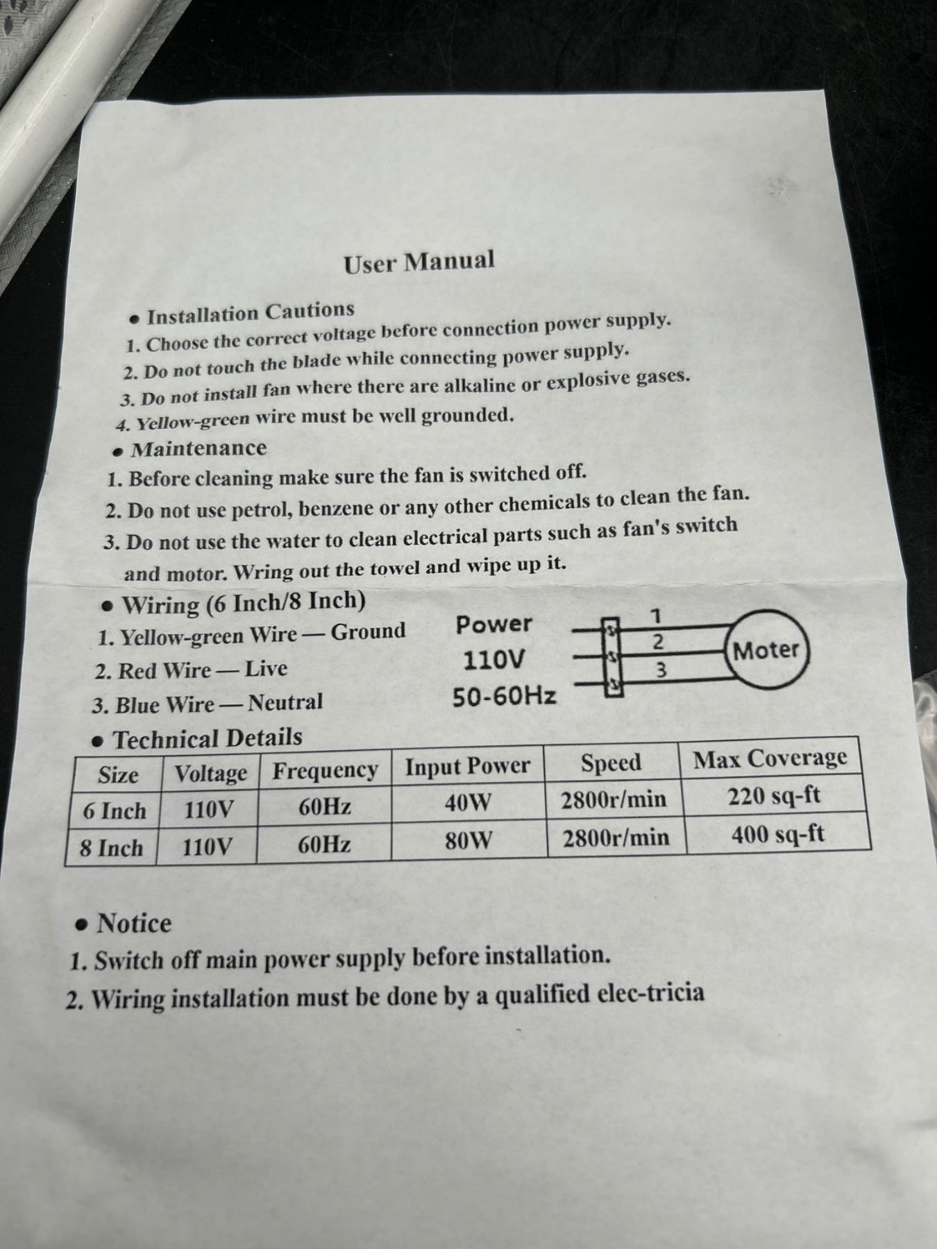 Exhaust Duct Ventilator Fan Model FD-150 with 400W Power, 110V