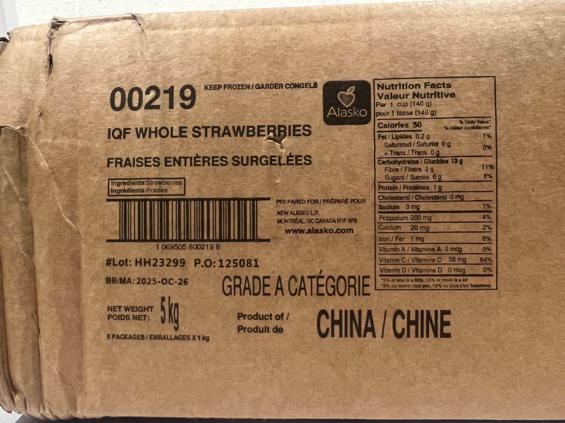 *FROZEN* Alasko IQF Whole Strawberries, 5kg