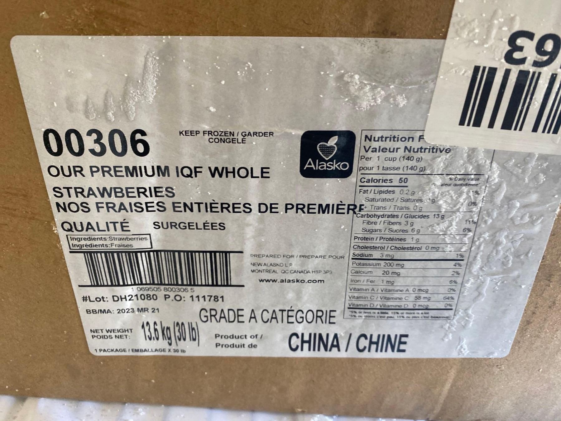 FROZEN - Alasko Premium IQF Whole Strawberries - 30 Lbs