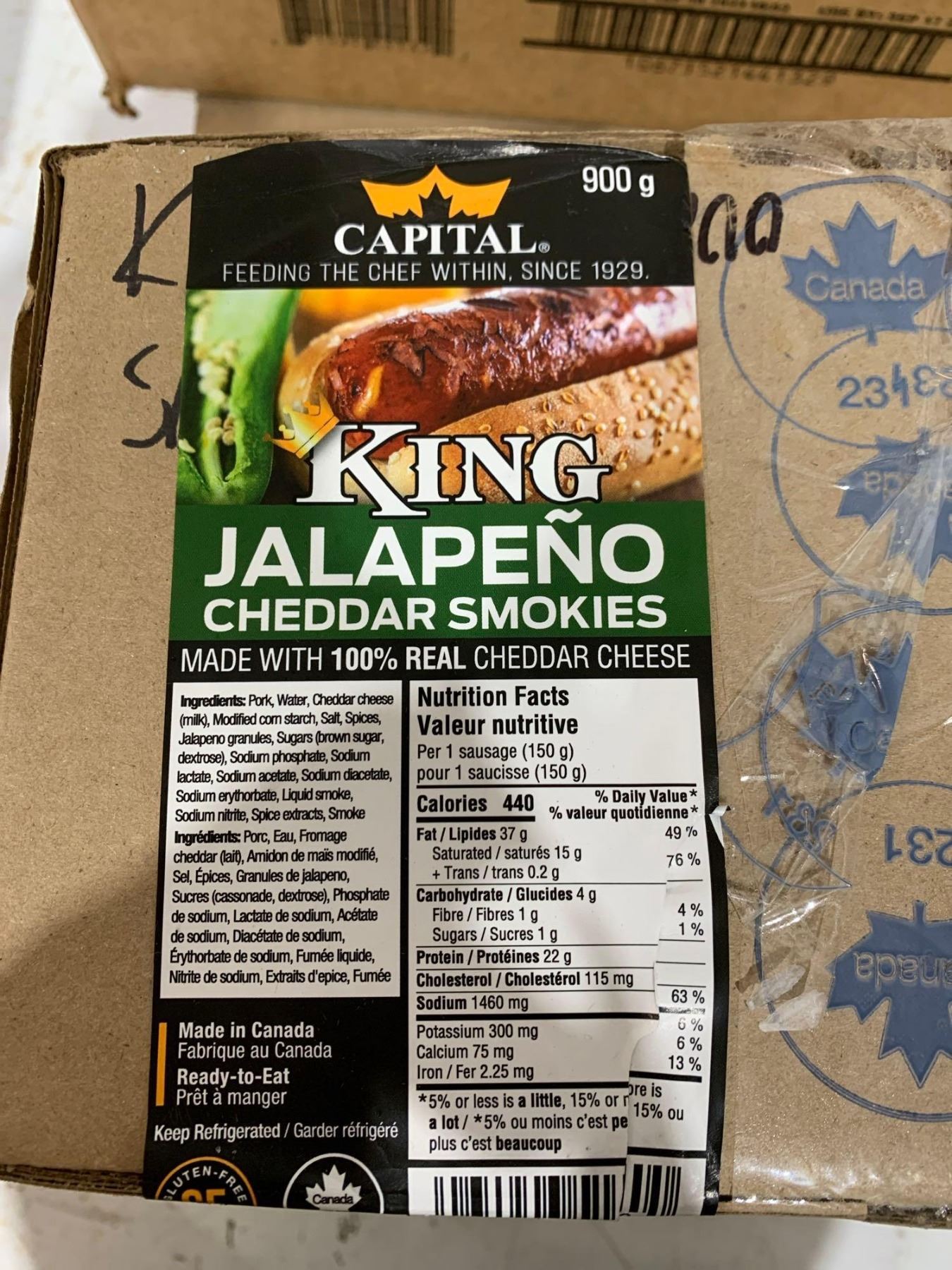 FROZEN - Capital King Jalapeno Cheddar Smokies 900g
