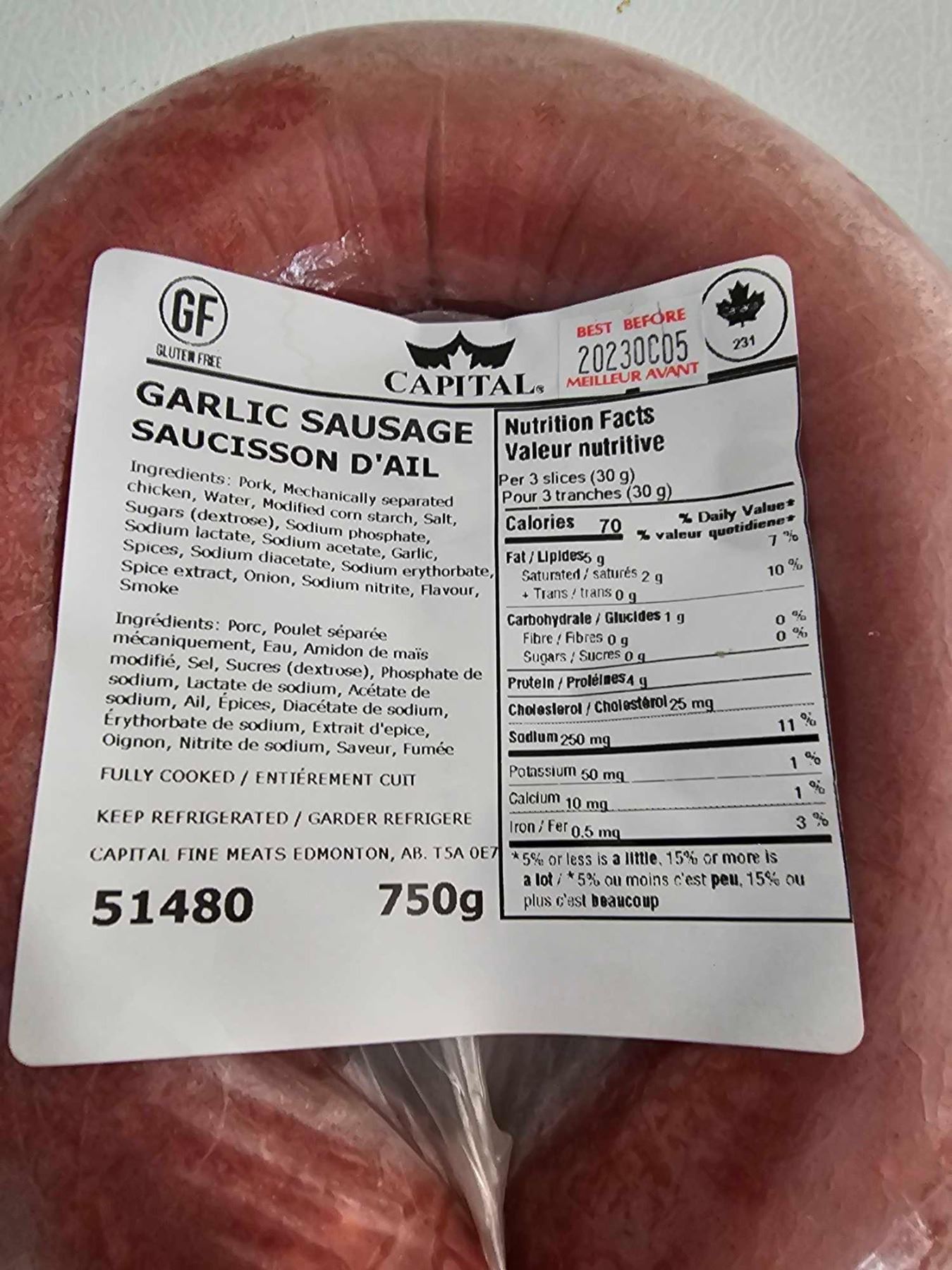 **FROZEN** Capital Meats Garlic Sausage 2x750G