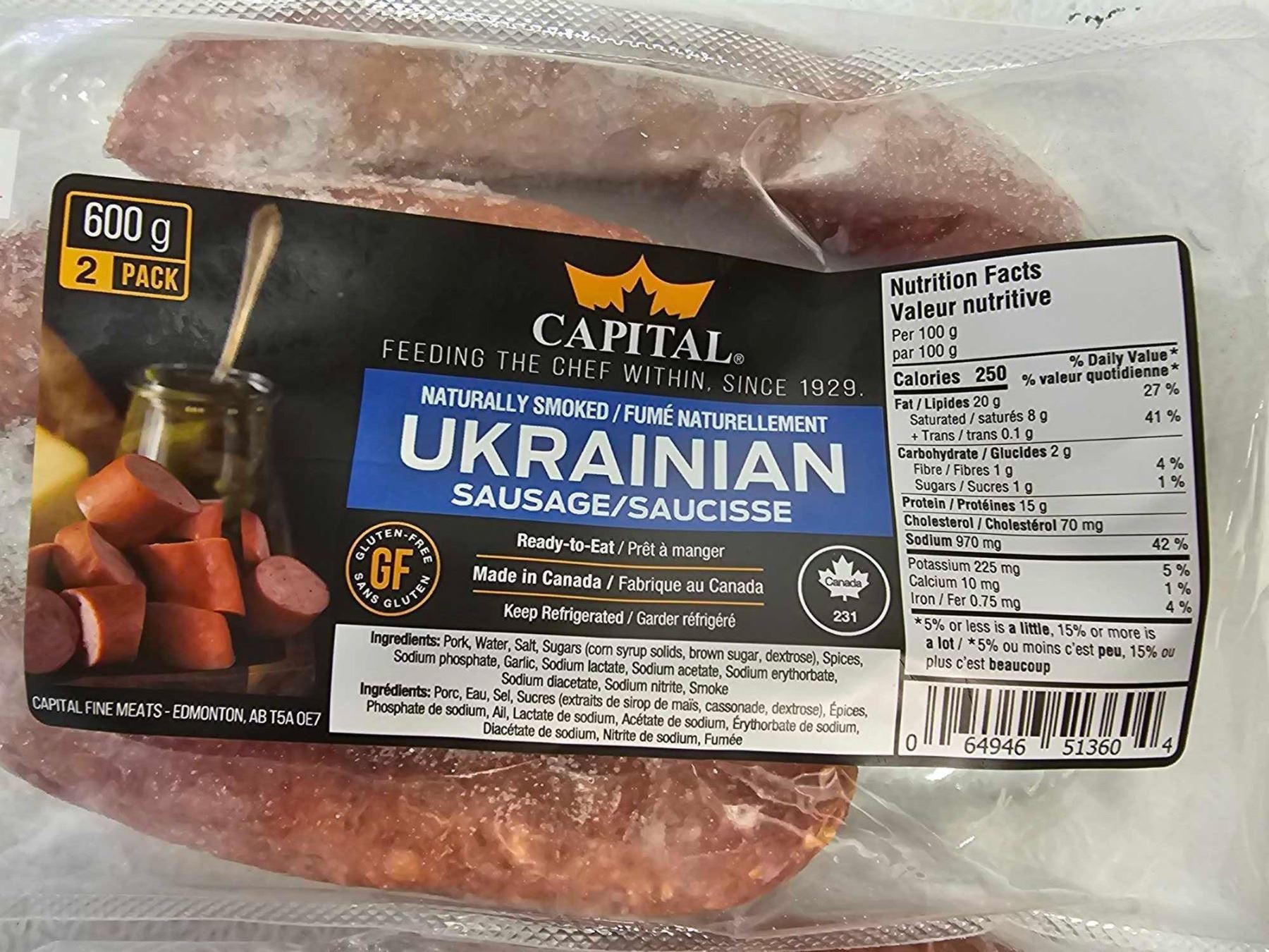 FROZEN -Capital Naturally Smoked Ukrainian Sausage 2x600g