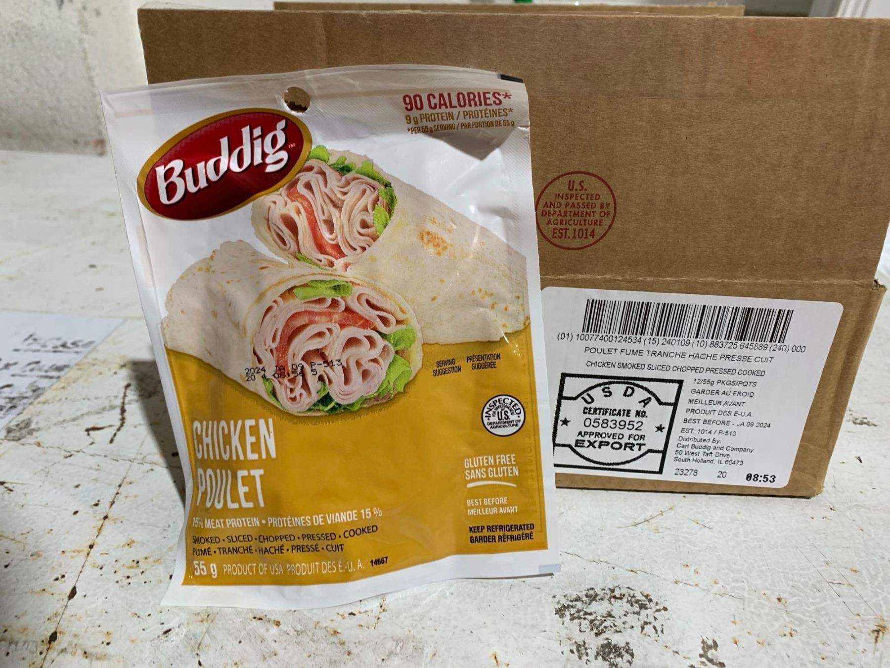 FROZEN- Chicken smoked, sliced, chopped, pressed, cooked 12 x 55g