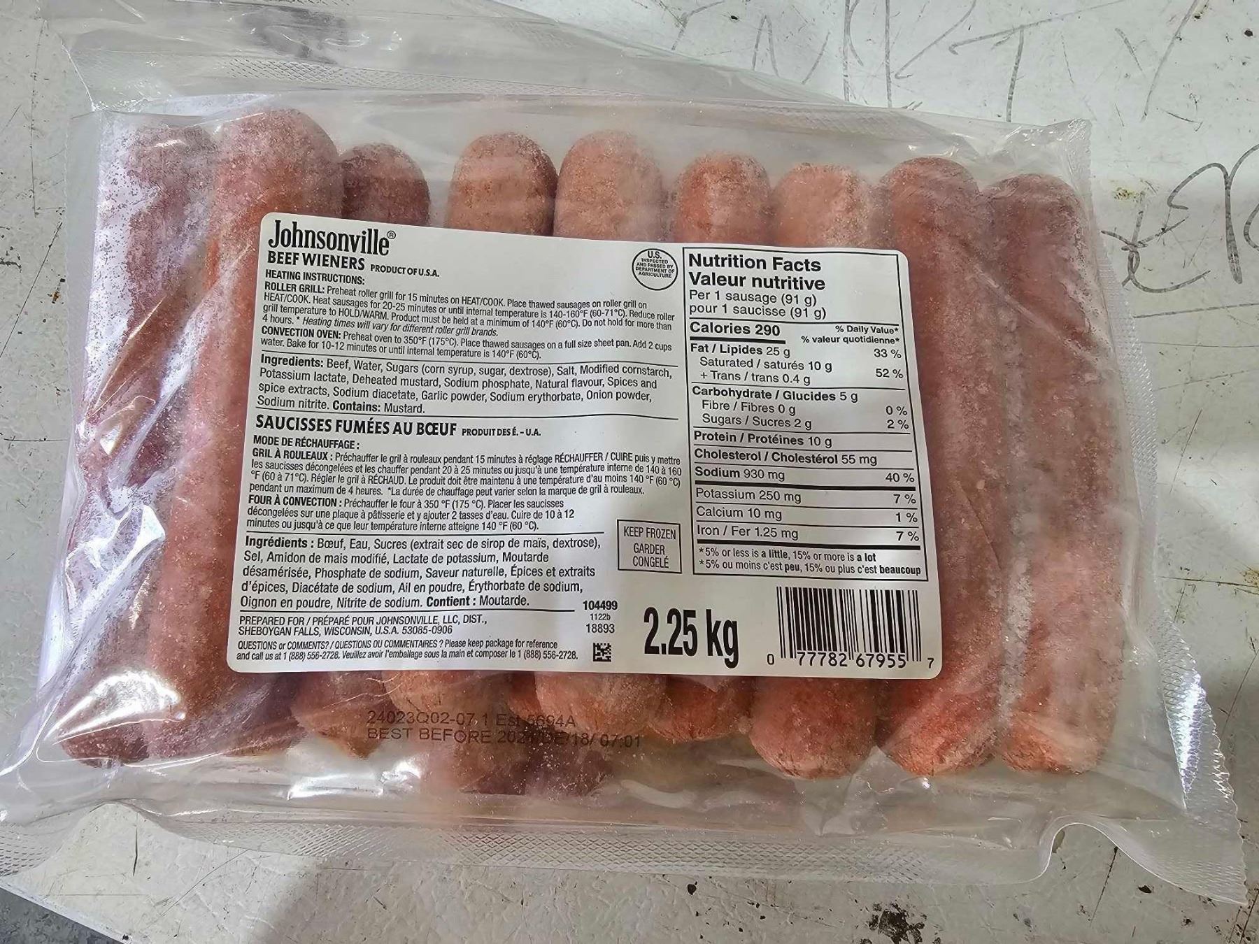 ***FROZEN*** Johnsonville Beef Jumbo Wieners 2.25Kg
