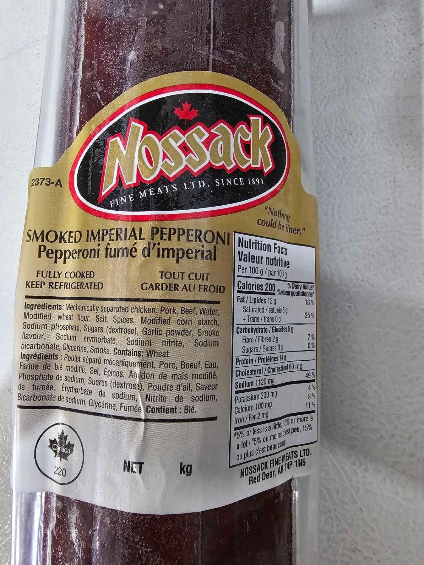 ***FROZEN*** Nossack Smoked Imperial Pepperoni Aprox. 5 Lbs