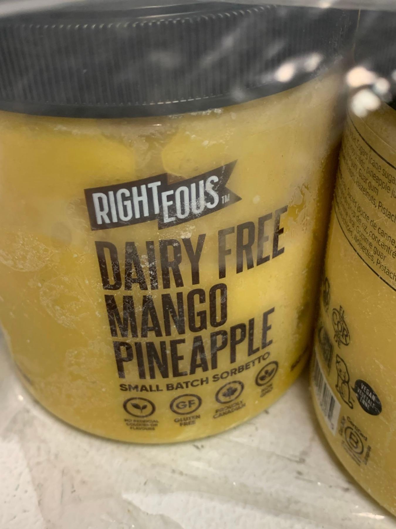 FROZEN - Righteous Dairy Free Mango Pineapple Small Batch Sorbetto 6x562ml