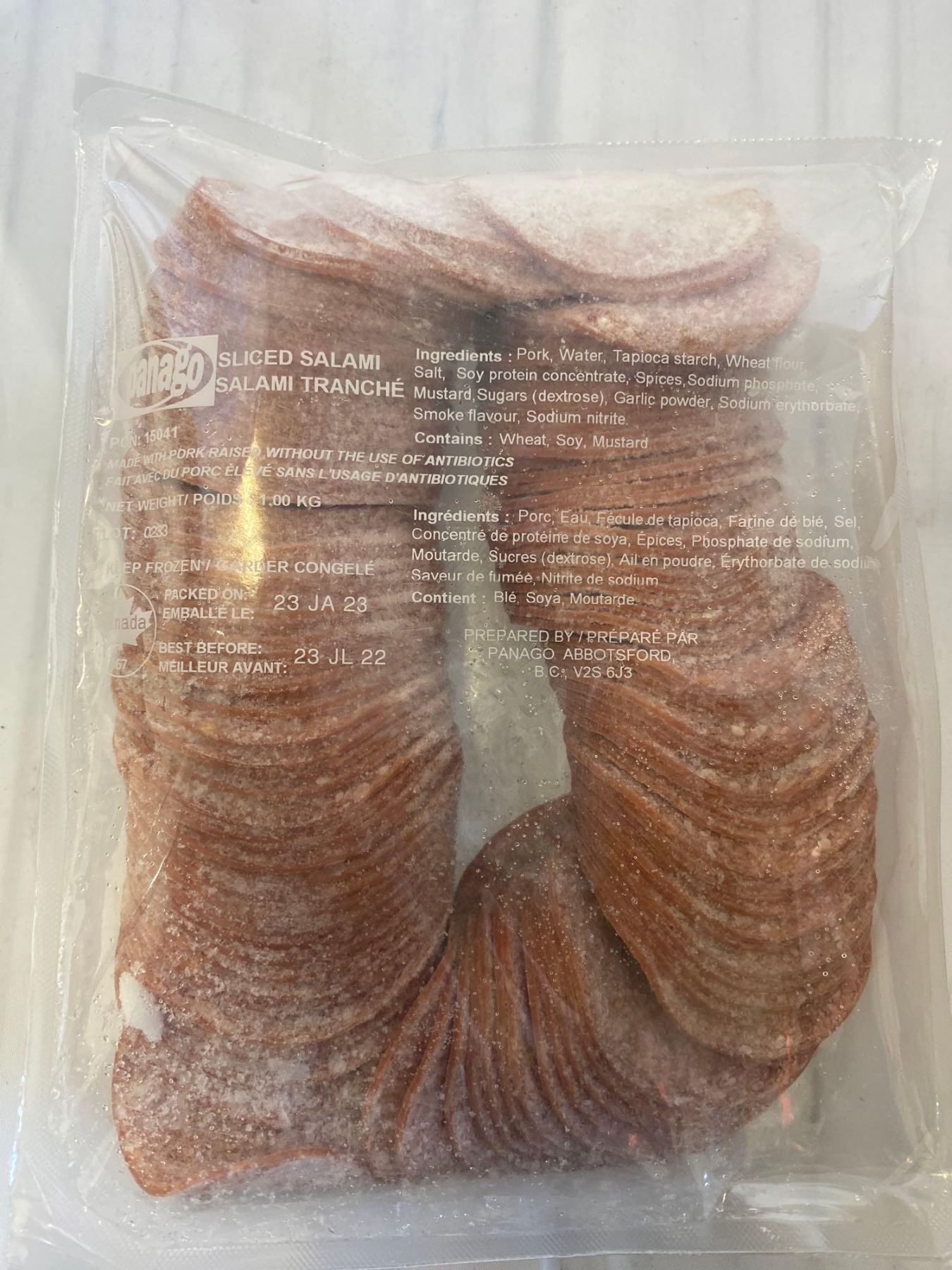 FROZEN - Sliced Pork Salami - Raised without Antibiotics - 1Kg