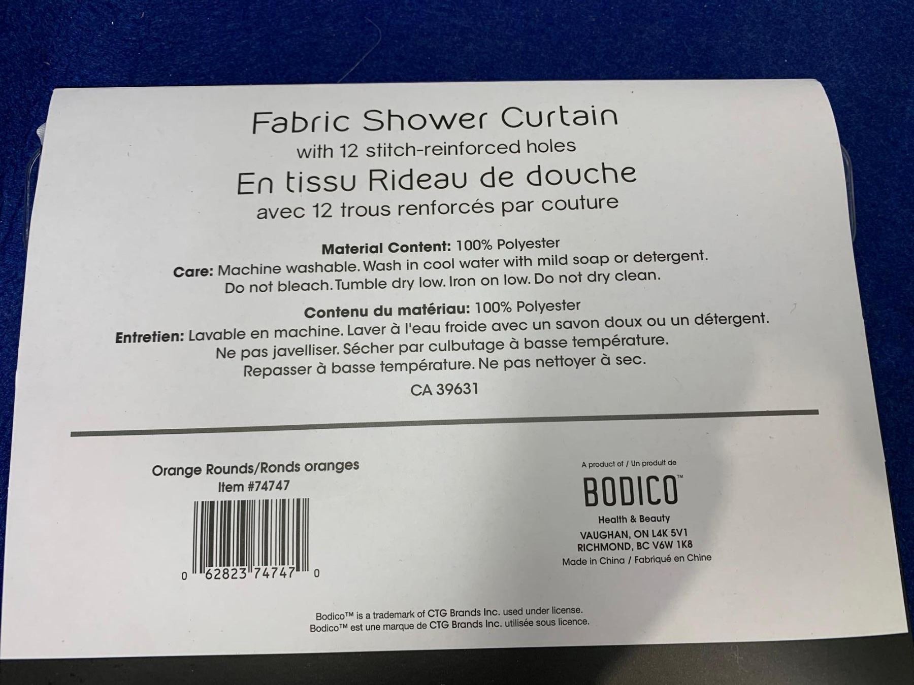 Fabric Shower Curtain (71in x 71in) and Shower Curtain Rings
