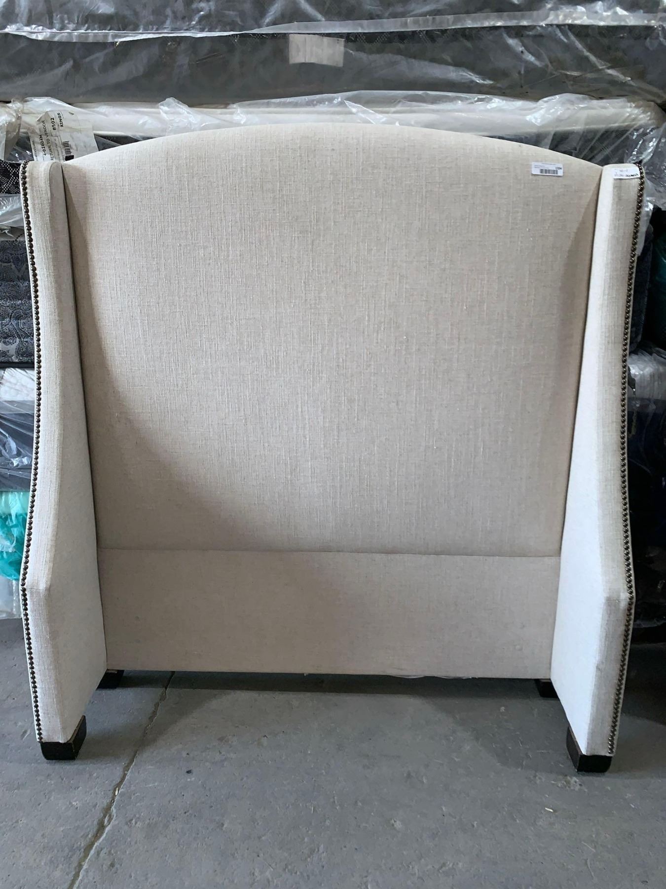 Fabric Upholstered Twin Size Headboard Cream Tweed/Linen