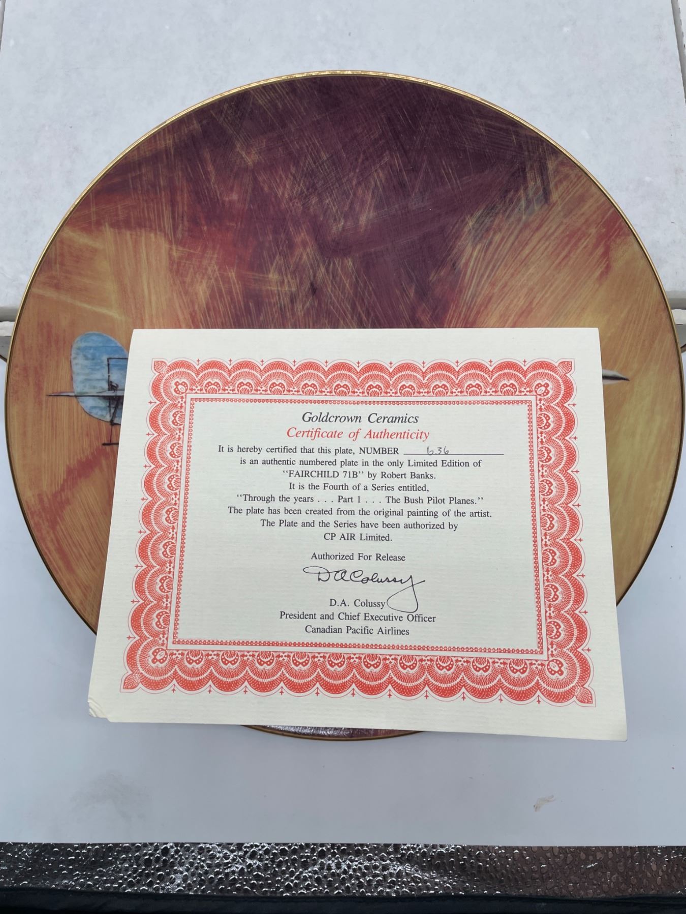 Fairchild CF-BVS Decorative Collector Plate with Certificate of Authenticity