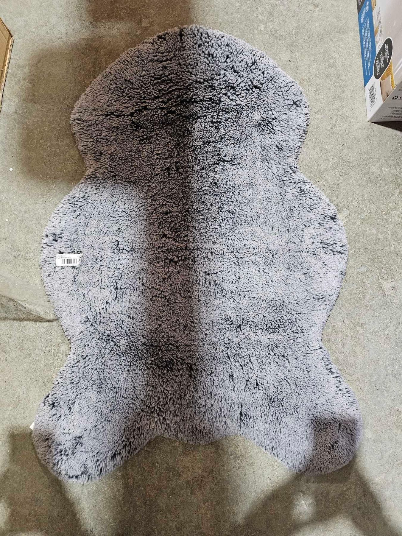 Faux Fur Floor Mat - 3'x2' -  Grey