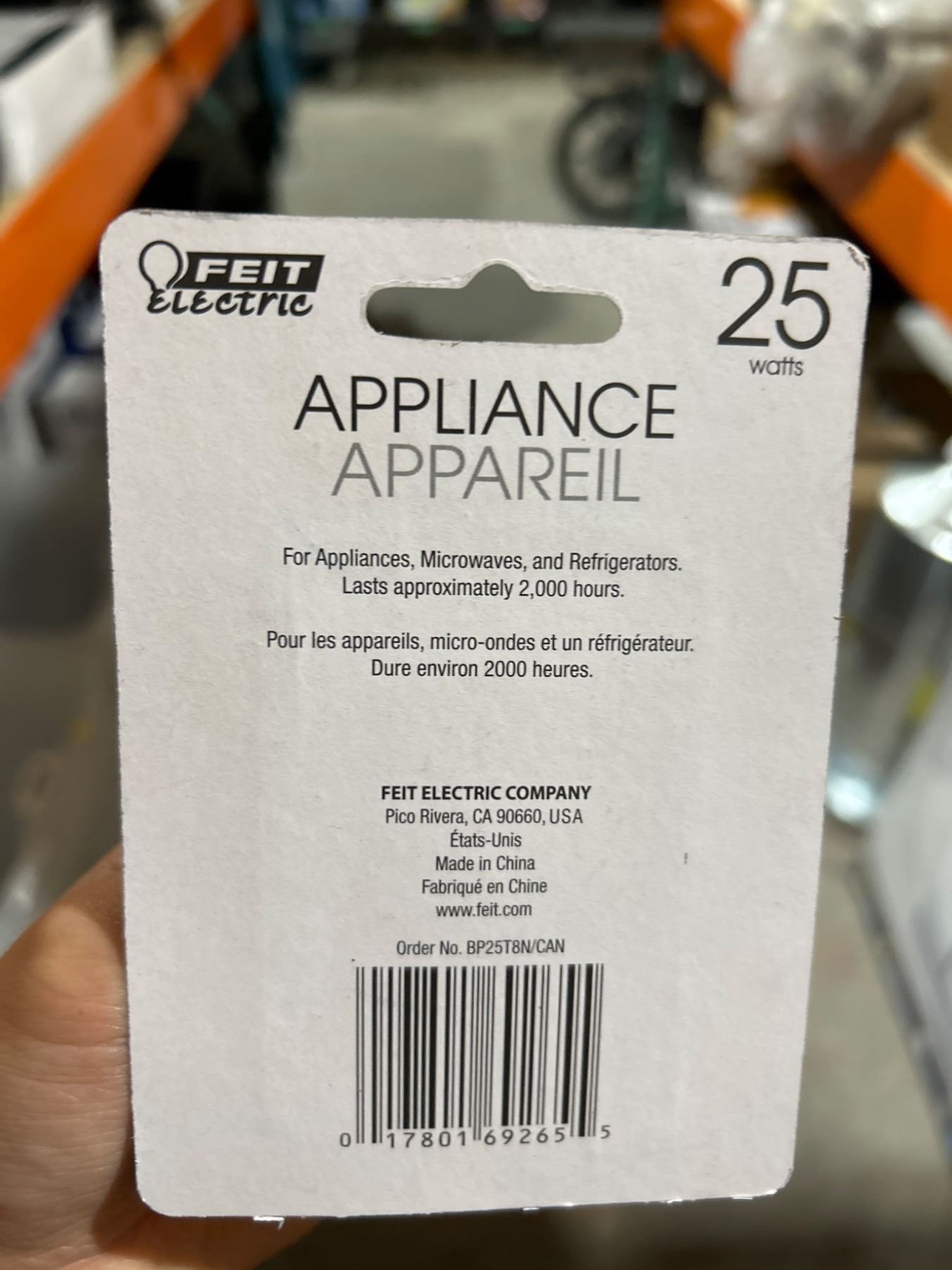 Feit Electric Appliance Bulbs 25 Watts Intermediary Base, Lot of 8